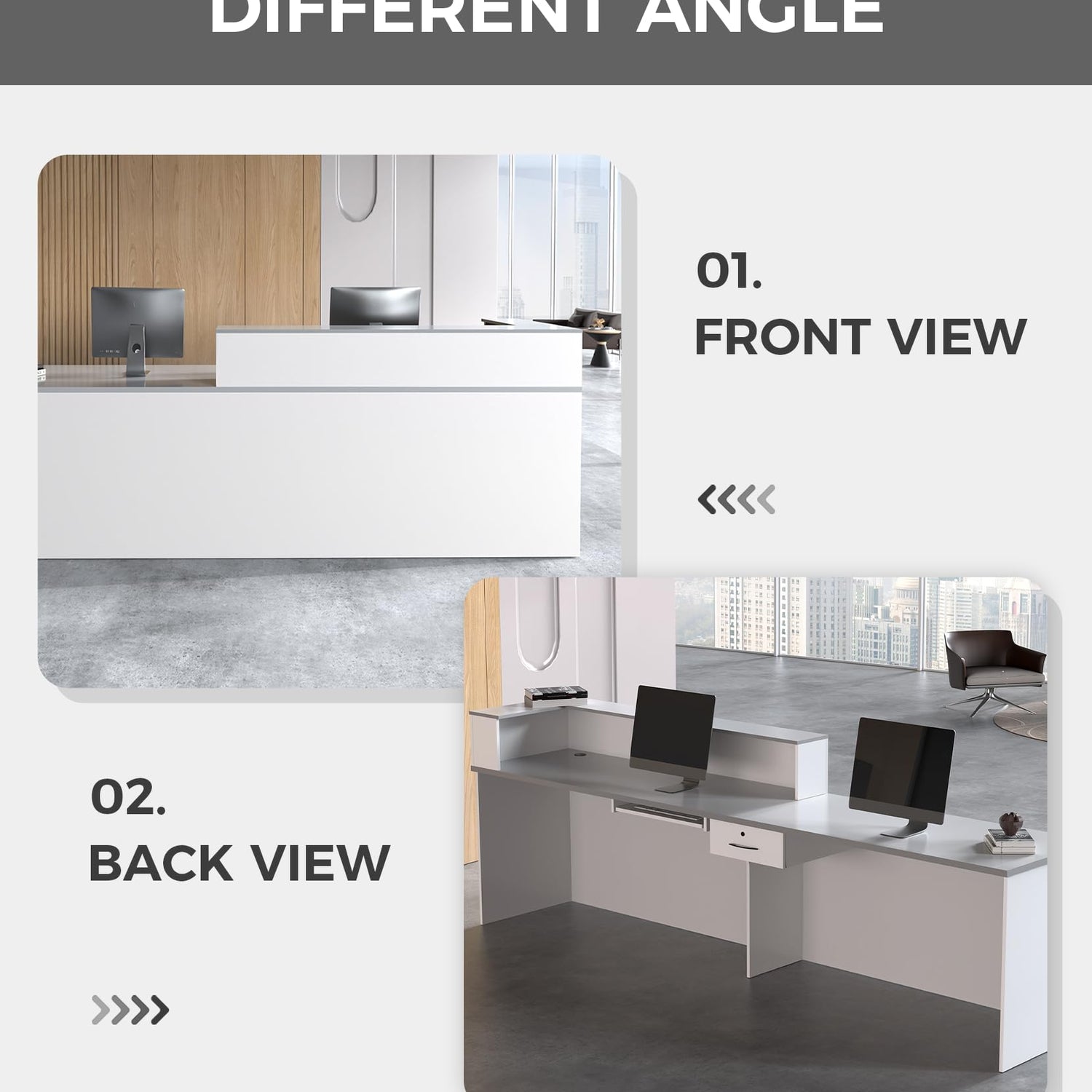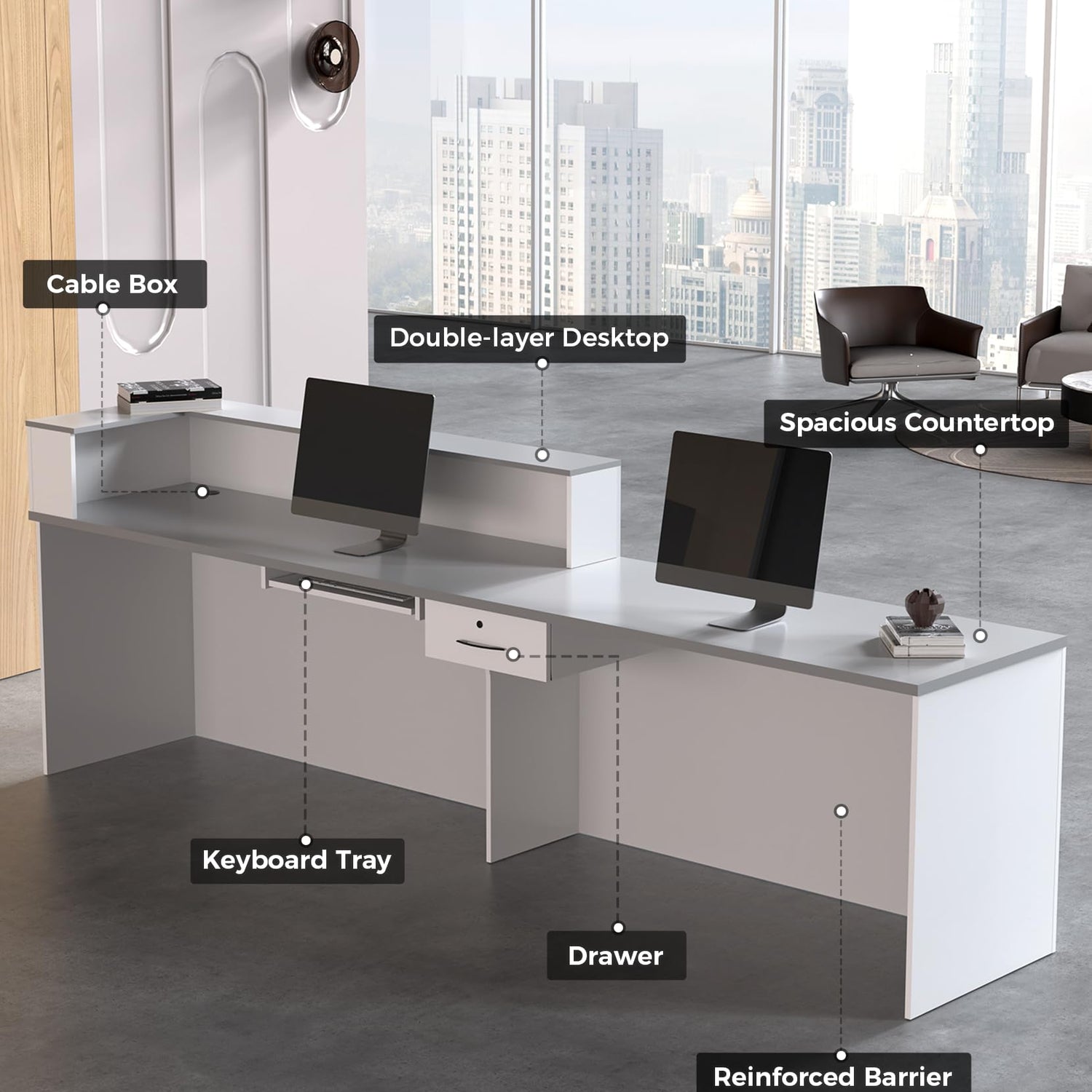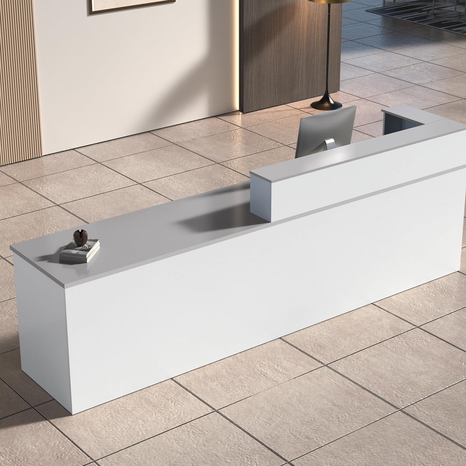 - ใ๐ฆ๐๐๐น๐ถ๐๐ต ๐ง๐๐ผ-๐ง๐ผ๐ป๐ฒ ๐๐ผ๐น๐ผ๐ฟ๐ ๐ณ๐ผ๐ฟ ๐๐ป๐ ๐ฆ๐ฝ๐ฎ๐ฐ๐ฒใChoose from White + Grey, White + Black, or Grey + Black to match your dรฉcor. Whether you need an L shaped reception desk for large offices, a small reception desk for compact salons, or a front lobby reception counter for hotels and retail, these versatile finishes make the desk adaptable to any professional setting