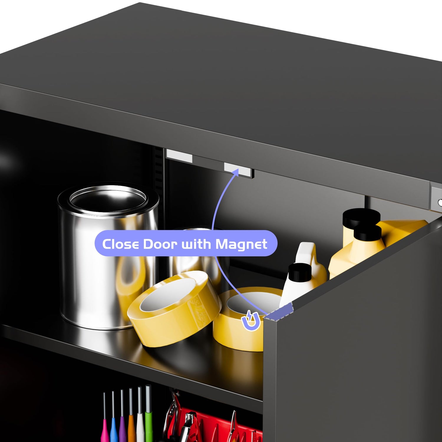 - 【Great Garage Storage】Garage Metal storage Cabinet can also be used to store a variety of automotive supplies, such as oil, car wash supplies, tires and so on. These items require special care when stored to prevent leakage or scattering. Garage metal storage cabinet provides a secure storage location to protect the safety and reliability of these items.