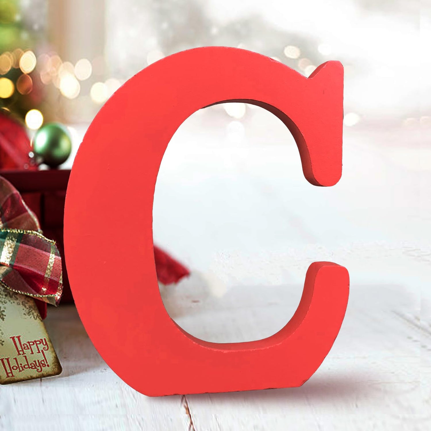 AOCEAN 6 Inch Red Wood Letters Unfinished Wood Letters for Wall Decor Decorative Standing Letters Slices Sign Board Decoration for Craft Home Party Projects (C)