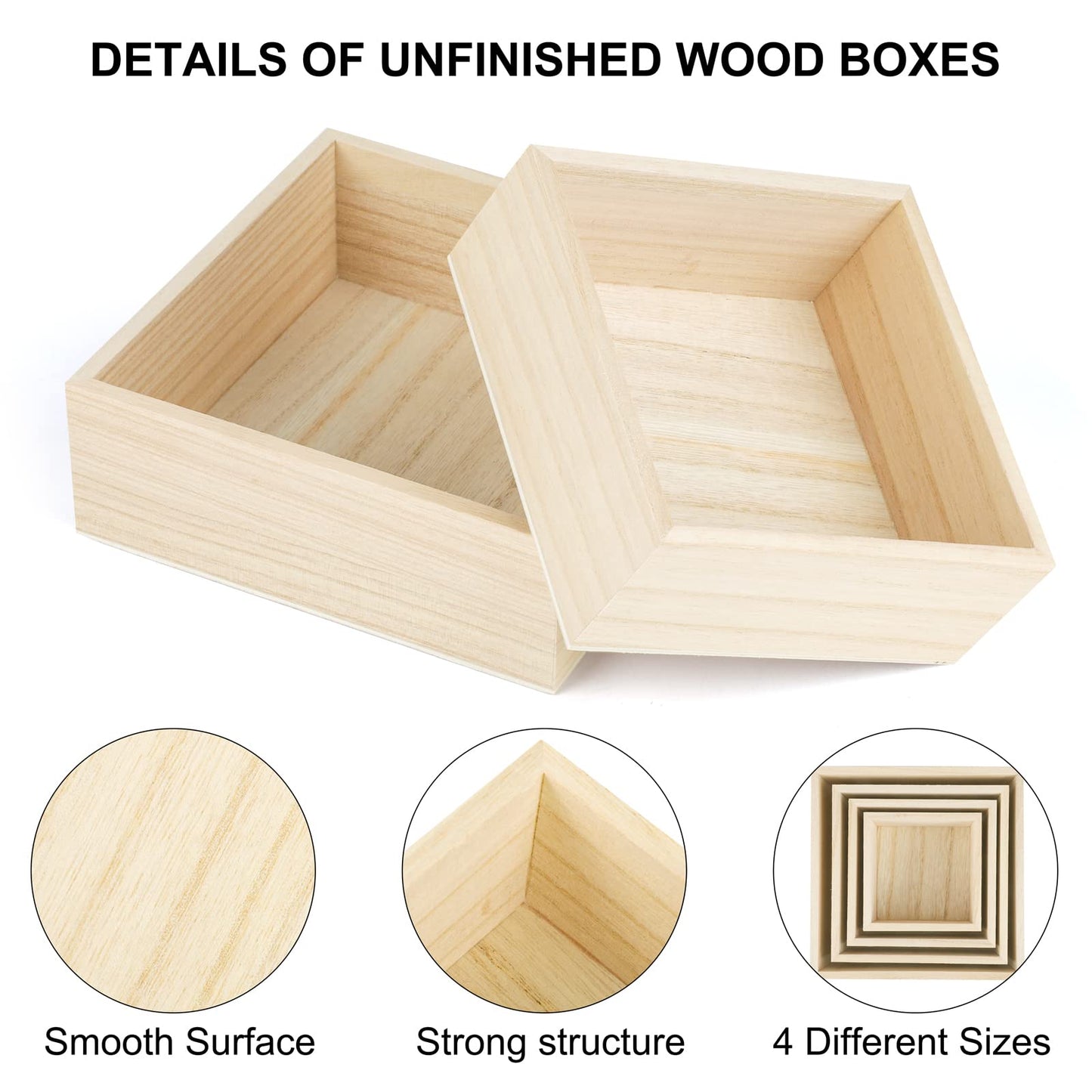 - Package includes: you will receive 8 pieces of unfinished wood boxes of different sizes; the number of products is enough for you to apply to a variety of activities; in addition to DIY by yourself, you can also share these boxes with your family and friends