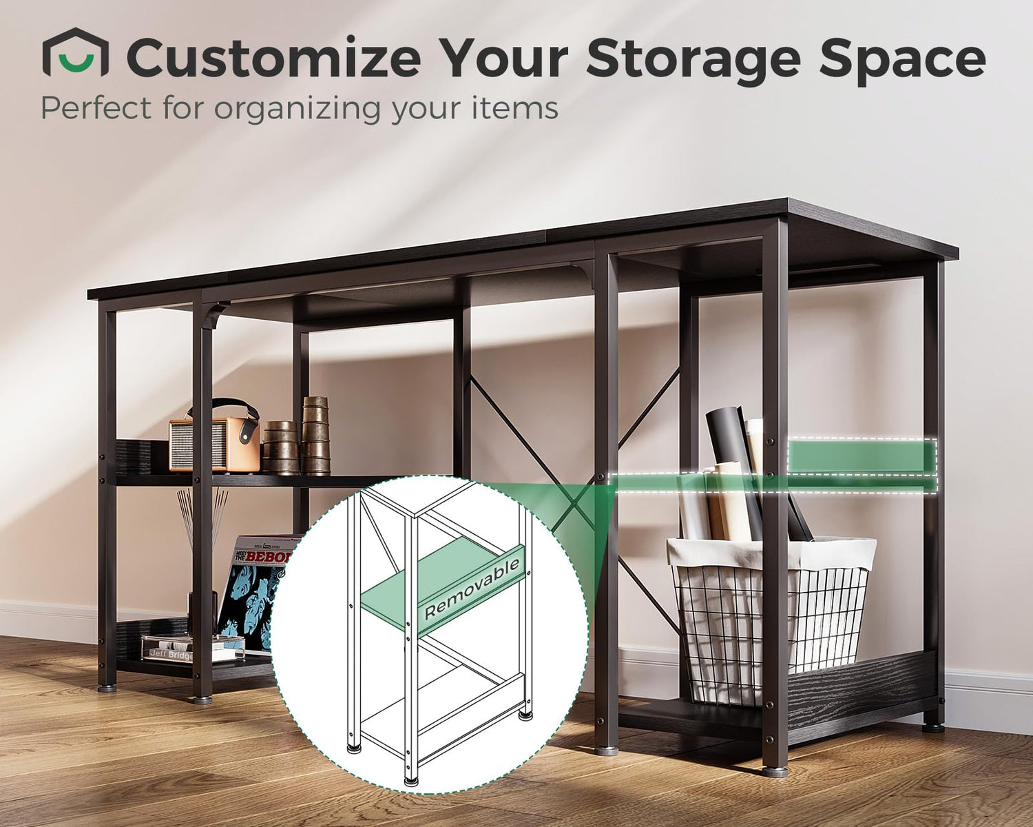 - 【Computer Desk with Storage Shelves】This computer desk with a 2-tier open shelf allows for a large storage space to keep your items organized and easily accessible, providing you with a neater desktop. The middle shelf board is removable. Both sides can serve as a 2-tier bookshelves or organizers to meet your different storage needs for home or office.