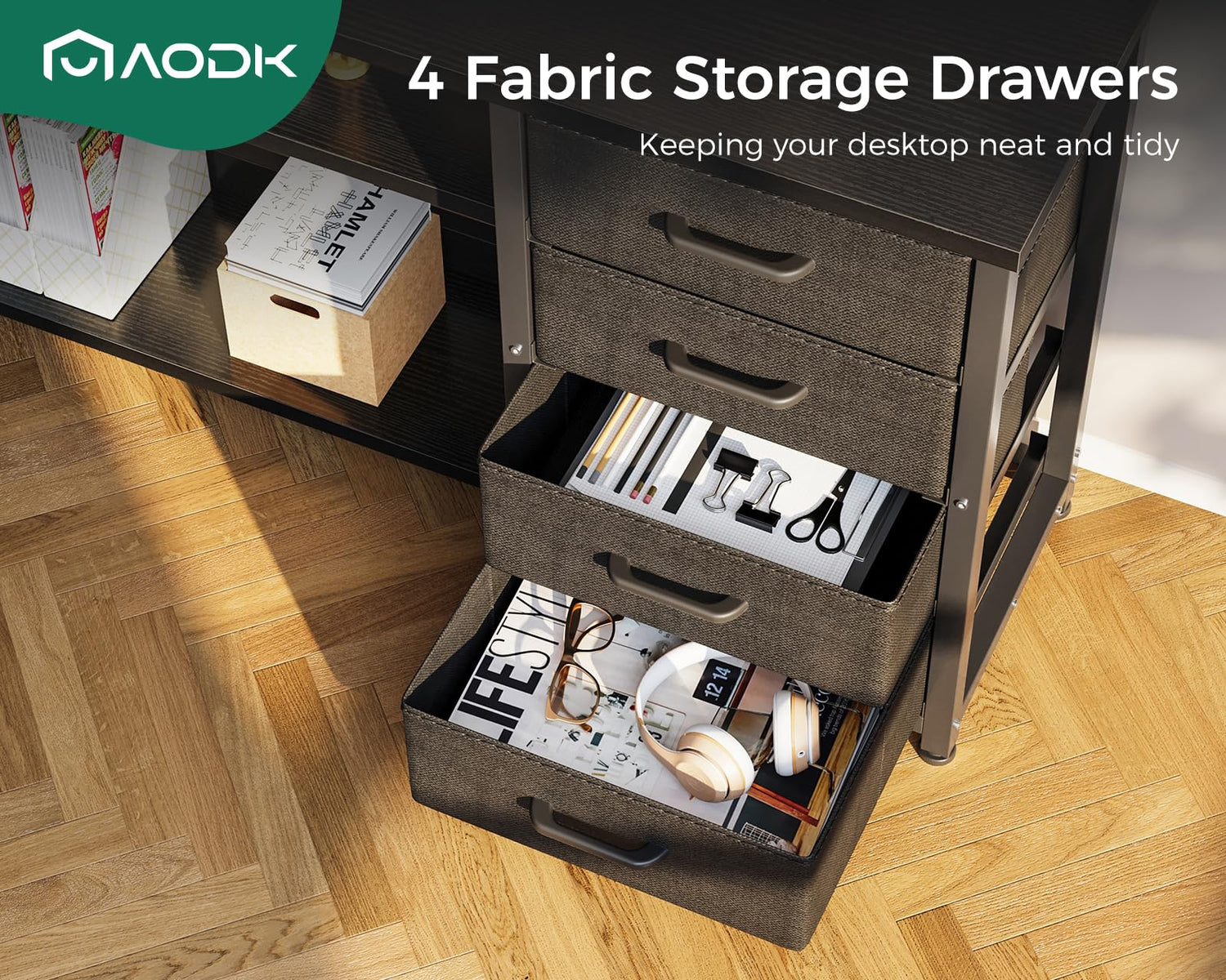 - 【Super Large Storage Space】 The AODK L-shaped desk provides 1 monitor stand, 1 CPU stand, 1 iron hook, 2 open shelfs and 4 Tier of drawers, which gives you super plenty of under-desk storage space to help you store your books, work files and small office stuffs, make your work and study more efficient. The height adjustable ergonomic monitor stand engineered to reduce back and neck stress by promoting a better sitting posture.