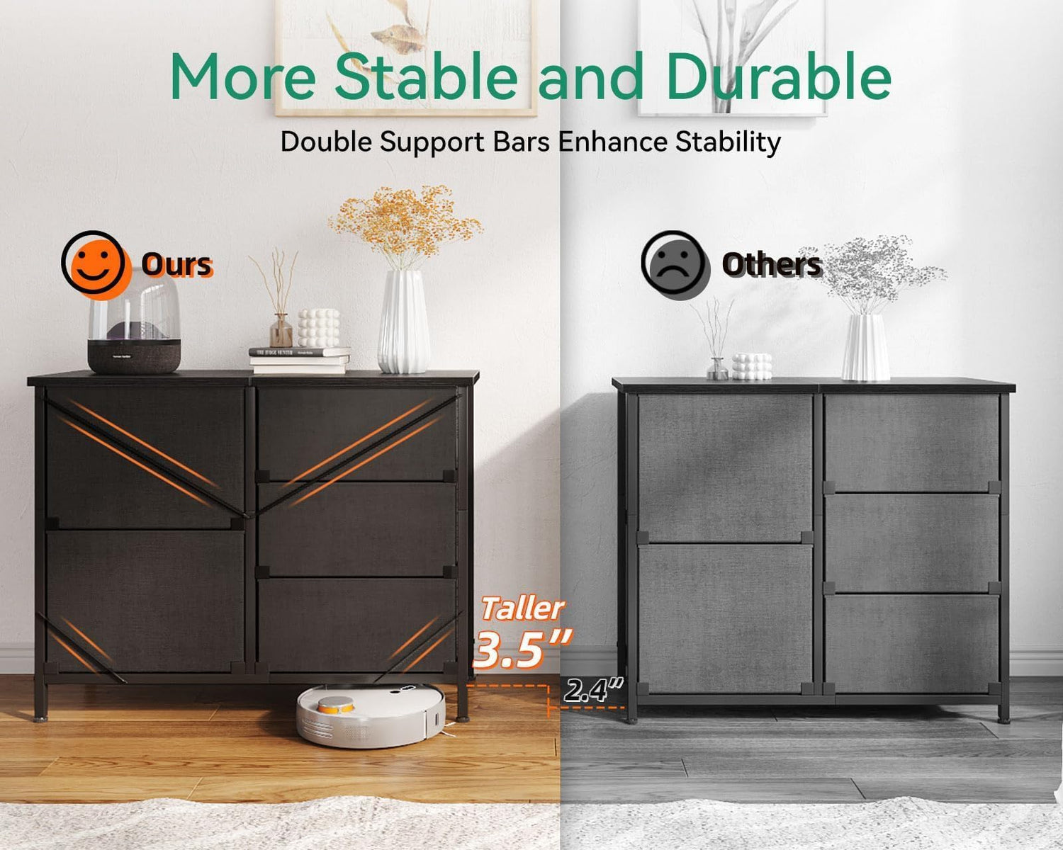 - Multifunction Dresser: The small dresser is perfect for the bedroom, closet, or living room. Additionally, it can also serve as a TV stand for small-sized TVs