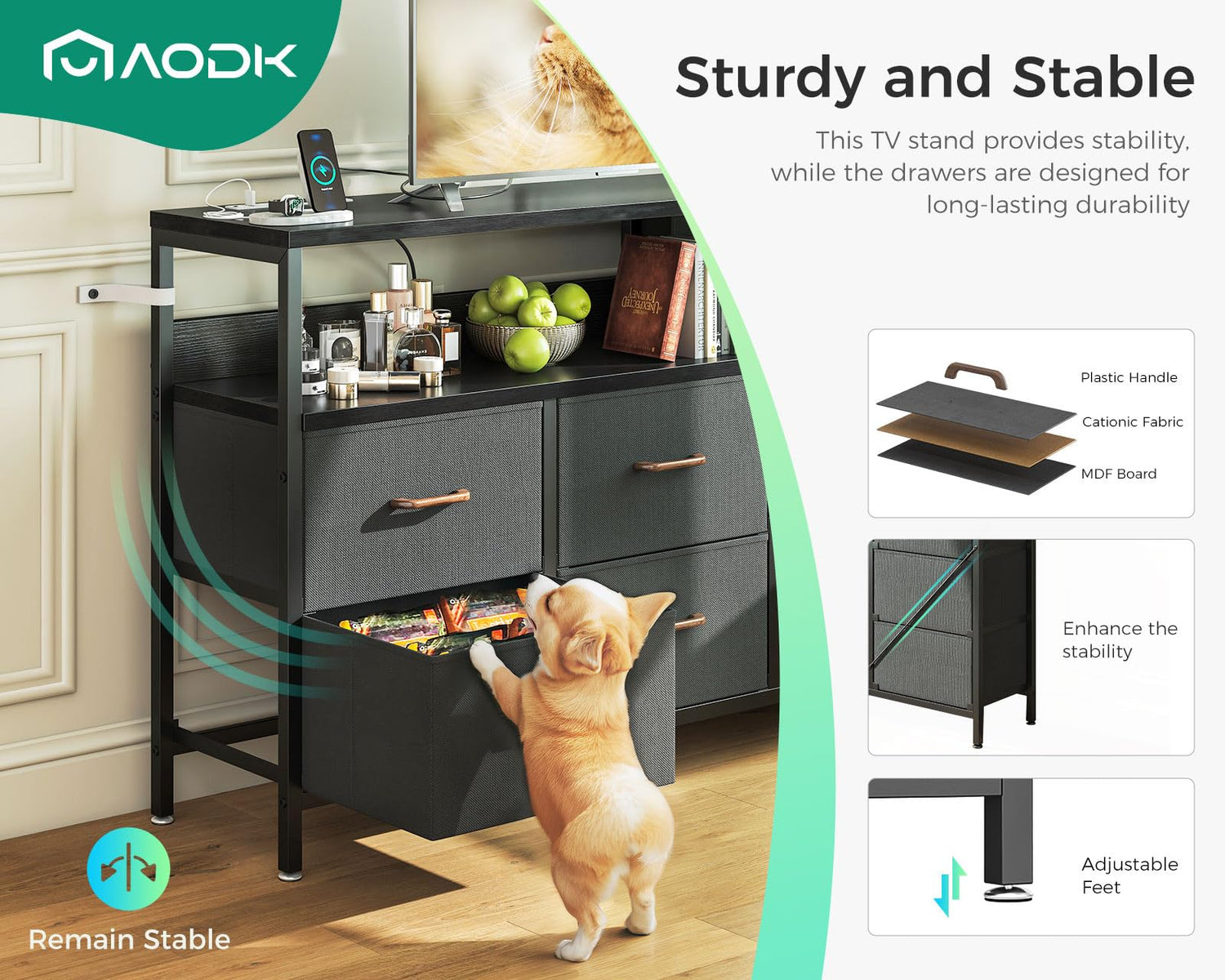 - Sturdy and Safe Design: Featuring a robust steel frame, back tension support, anti-tip belt, and adjustable feet, this dresser TV stand provides a stable and secure base for your TV and other equipment