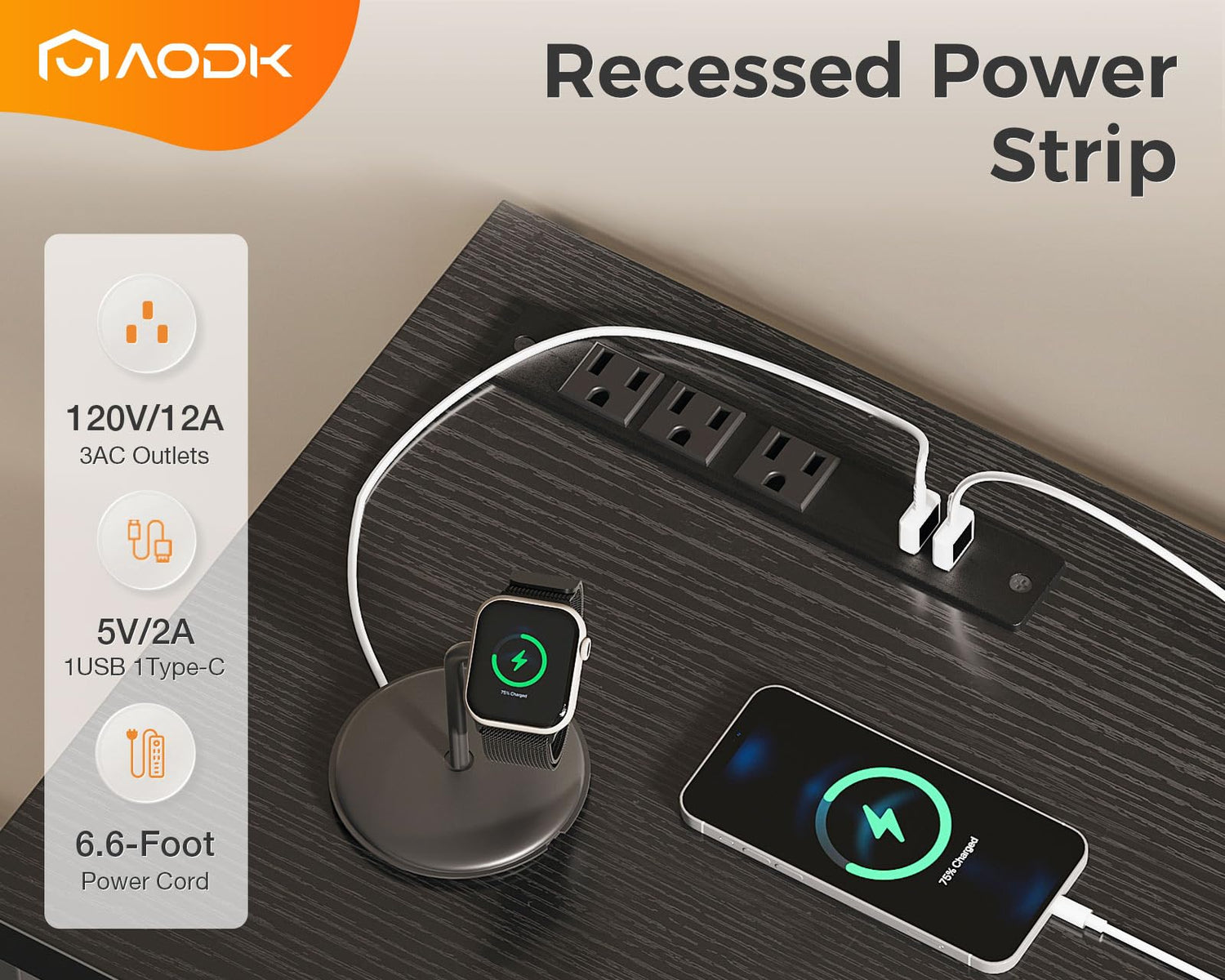 - 【Built-in Power Strip】The integrated charging station, equipped with 3 AC outlets, 1 USB port, and 1 Type-C port, offers a highly convenient and versatile solution that connects TVs, game consoles, computers, and a variety of other devices
