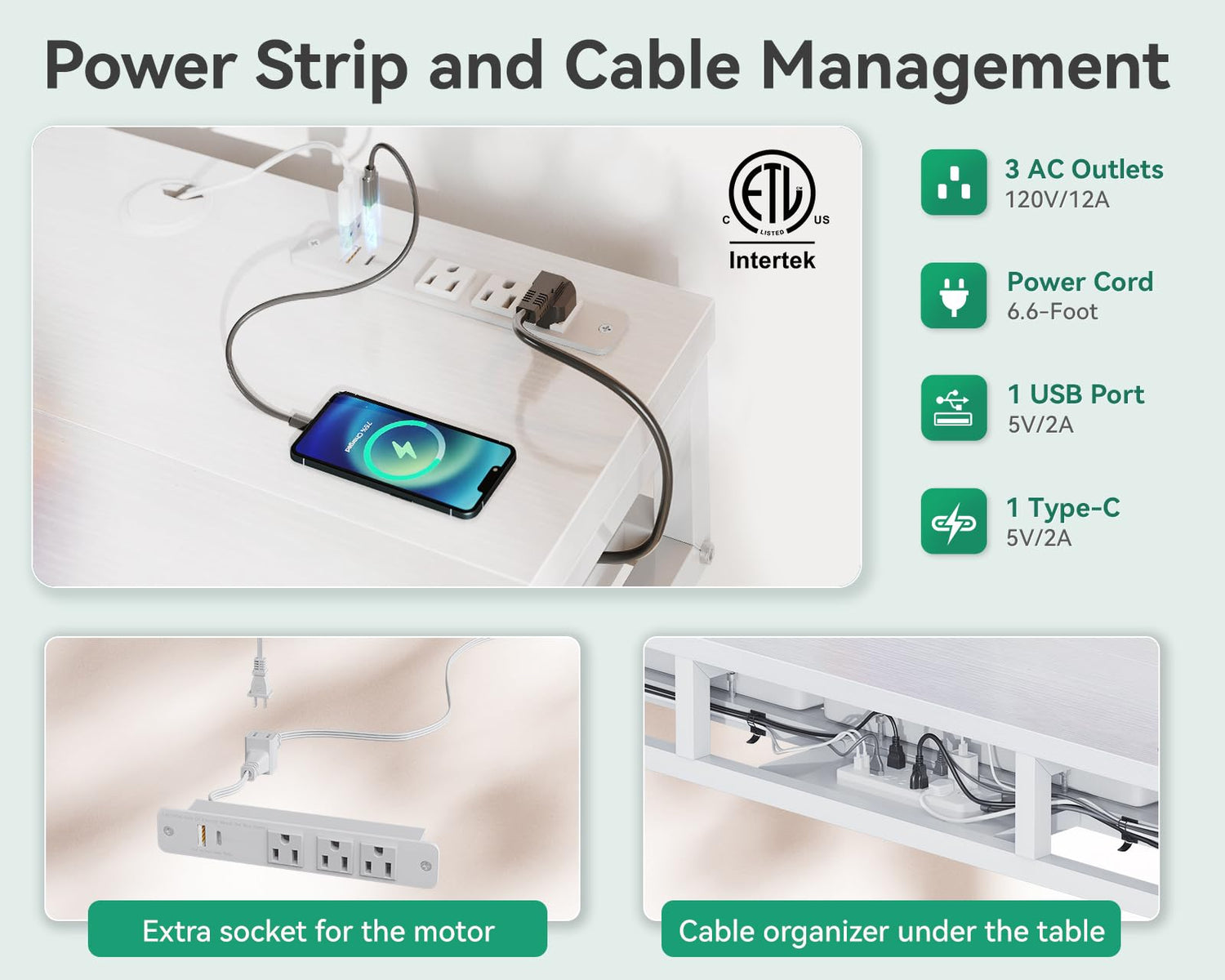 - Built-in power outlet: Our desk includes 3 outlets & 1 USB & 1 Type-C ports to charge your devices.