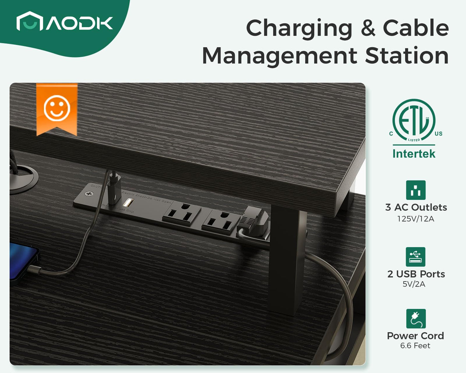 AODK Electric Standing Desk with Drawers & Keyboard Tray, 55 Inch Height Adjustable Desk with Power Outlets & LED Lights, Sit Stand Table with Monitor Stand for Home, Office, Black