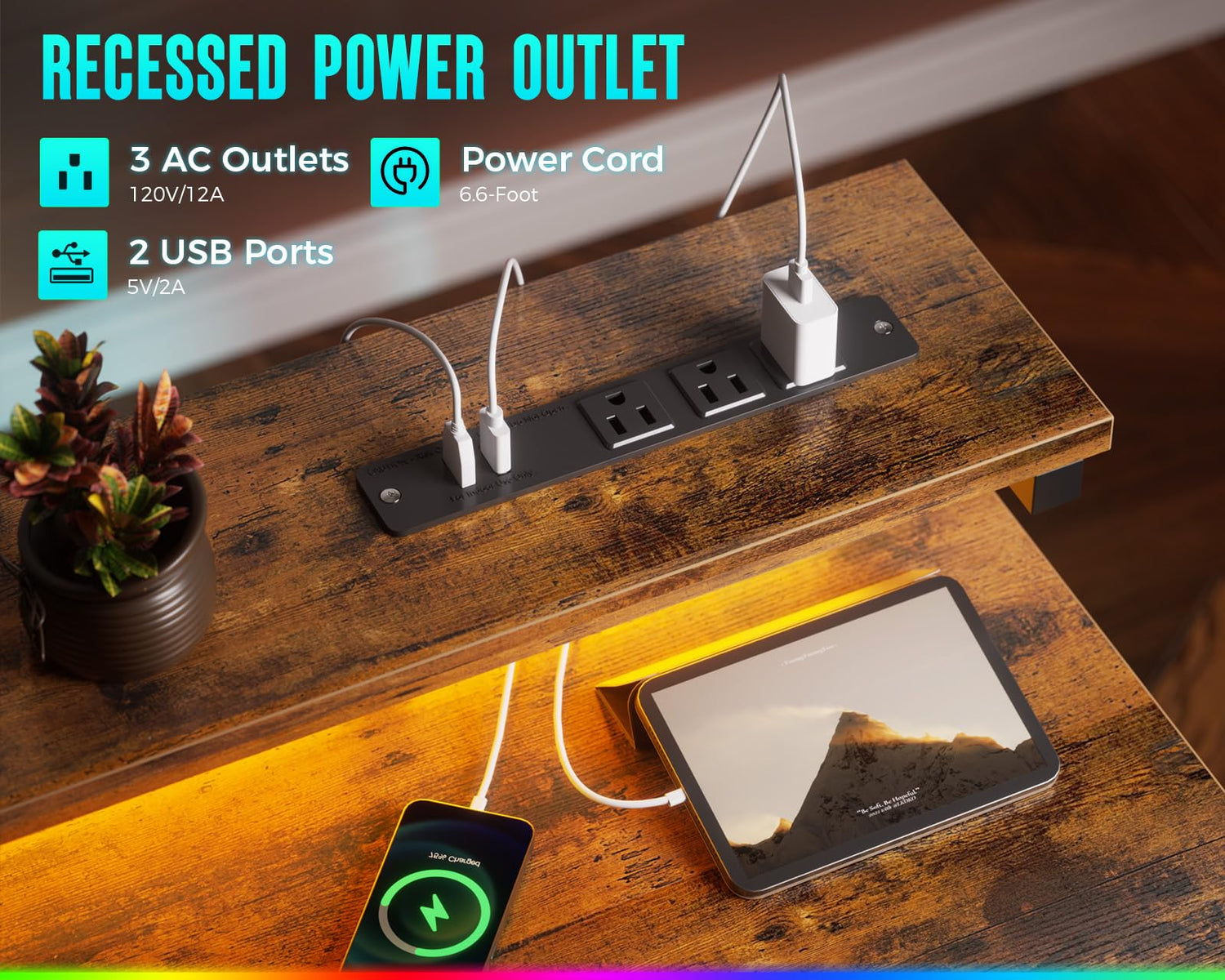- 【Desk with Power Outlet】This computer desk is equipped with a built-in power panel with 3 AC outlets and 2 USB ports. Now you can conveniently charge your electronic devices right from your desk, such as laptops, iPads, smartphones, and gaming equipment.