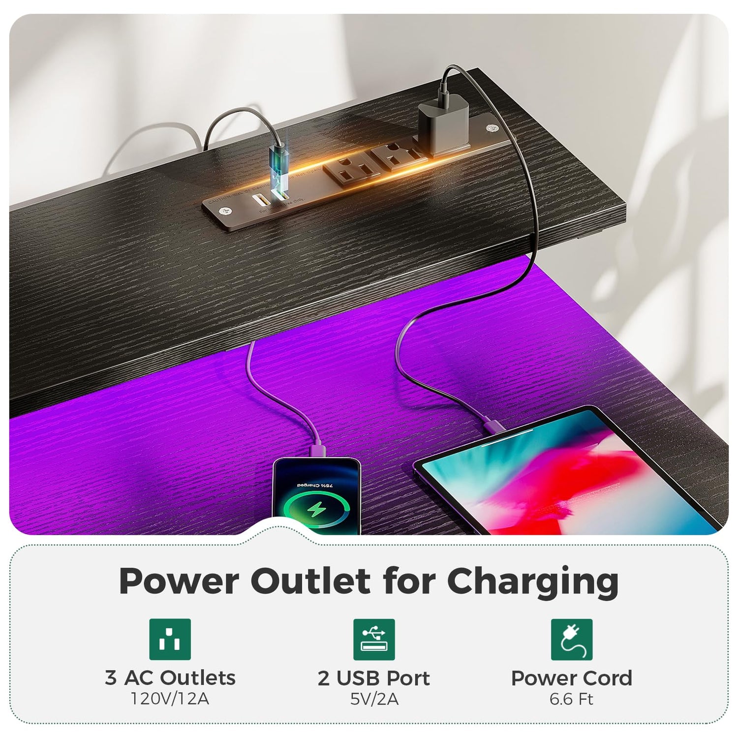 - Power Outlets for Charging: This office desk owns a built-in power strip with 3 AC Outlets & 2 USB Ports which can provide power support for all your electric equipment such as laptop, ipad and phone.