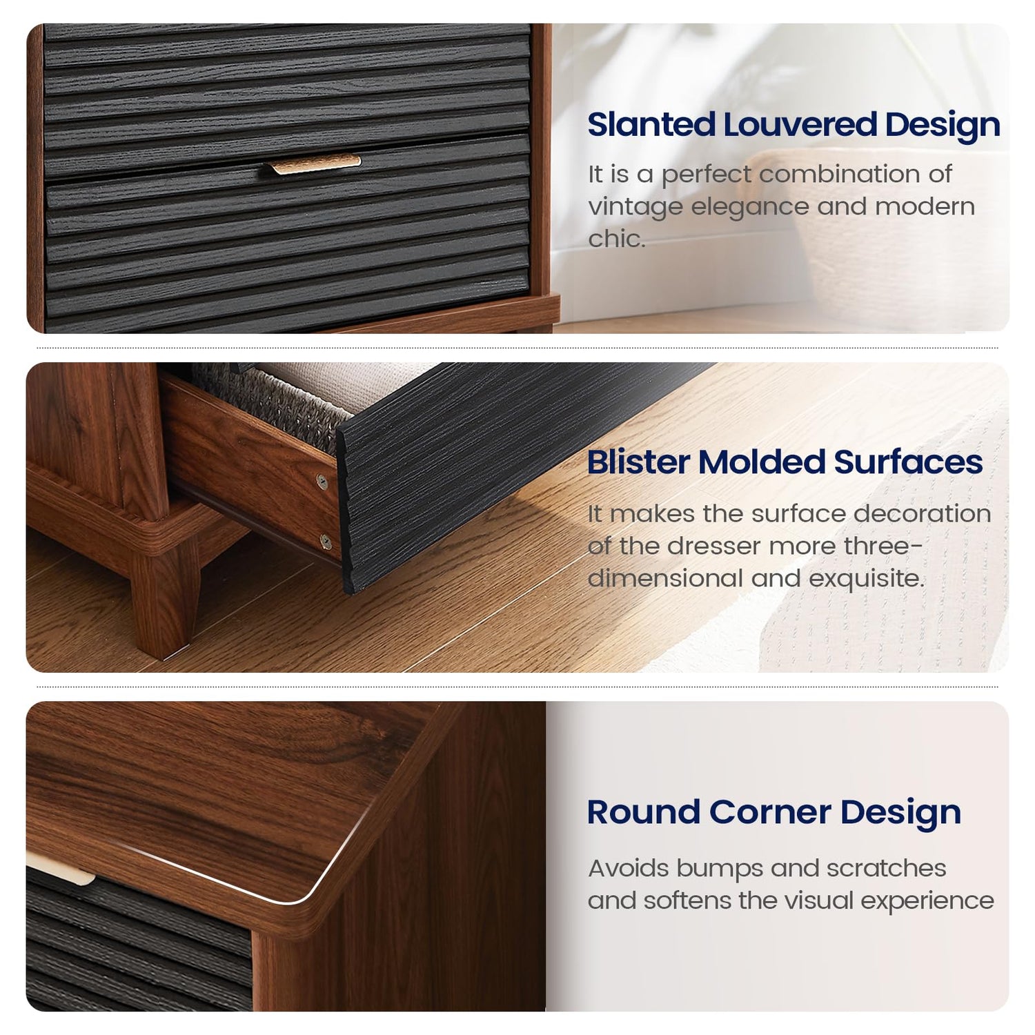 - 【Vintage Elegance】The unique slanted louvered panel enhances the texture and spaciousness of the AOGLLATI dresser. The thick tabletop features a natural wood grain that complements the natural oak dresser finish,creating a personalized and distinctive appearance. This is a perfect combination of vintage elegance and modern chic, adding a time-consolidated style to your home environment.