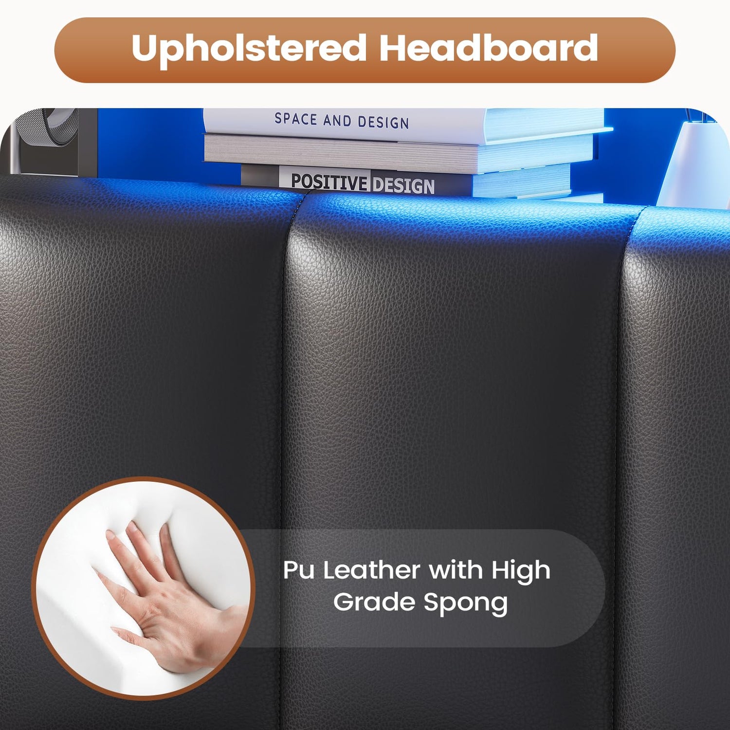 - 【Multi-function RGB led light】The bed frame full size is equipped with multi-function led light on the headboard and footboard. You can customize colors, brightness, music modes, timer mode and other functions can be controlled by the App.