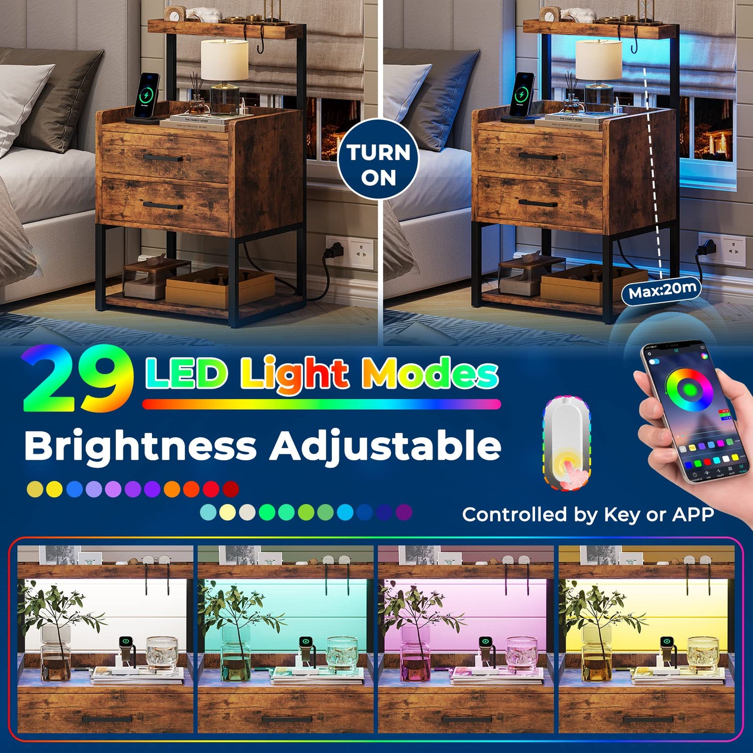 - 【LED Light with multi-variable RGB colors】The bedside nightstand comes with beautiful Multi-colour RGB LED Light, Phone App + Key multiple control modes. You can freely set the color, brightness, music mode and timing function, and design your light show according to needs and scenes, creating cheerful, romantic atmosphere. It will look more beautiful when the light is in the dark.