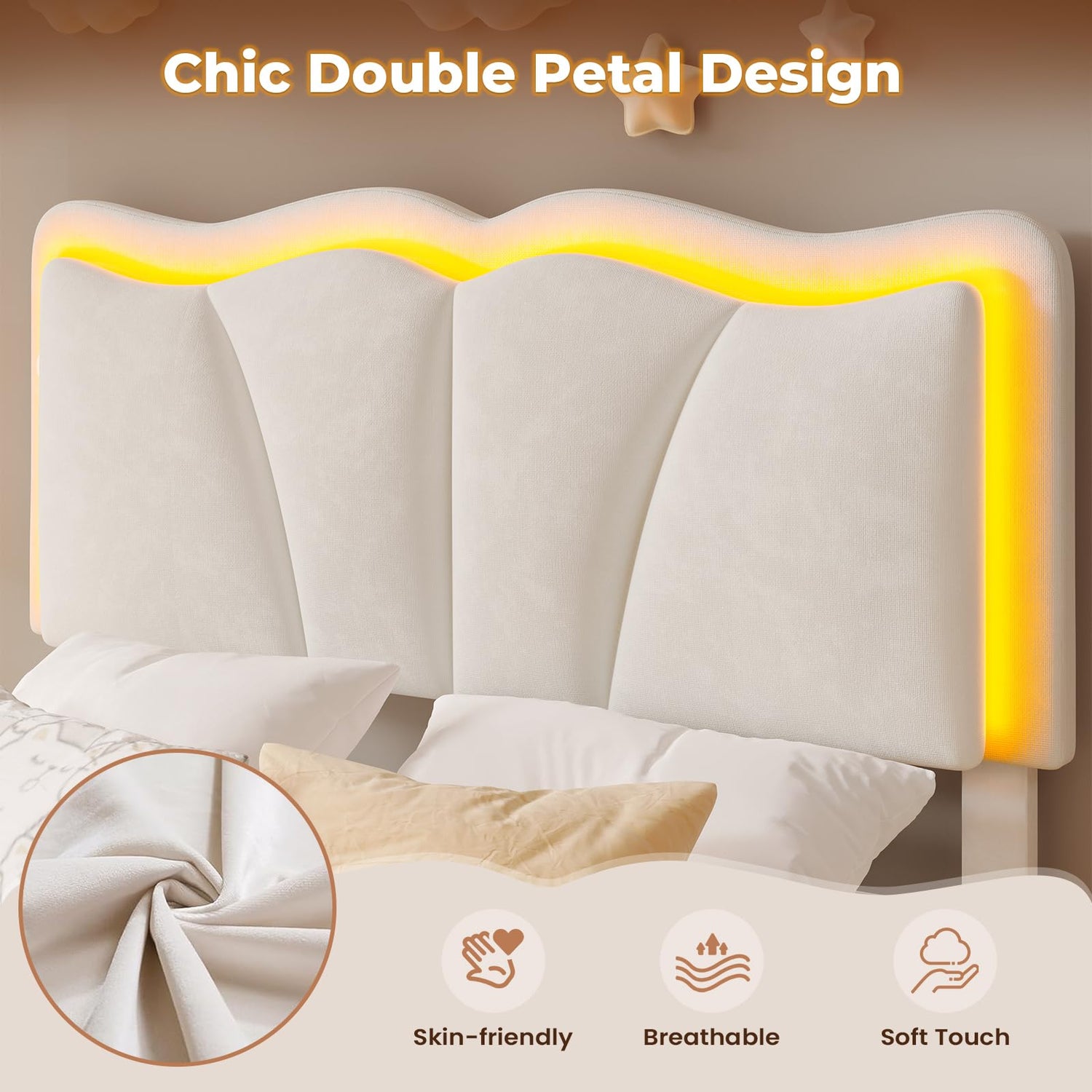 - 【Adjustable Headboard with Charging Station】The velvet headboard can be adjusted to accommodate mattresses from 10-13 inches. Beside, the flower headboard has 1 Typ-C and 1 USB port, which make it more easy for you to charge mobile phone, tablet, or computer, when you on the bed.