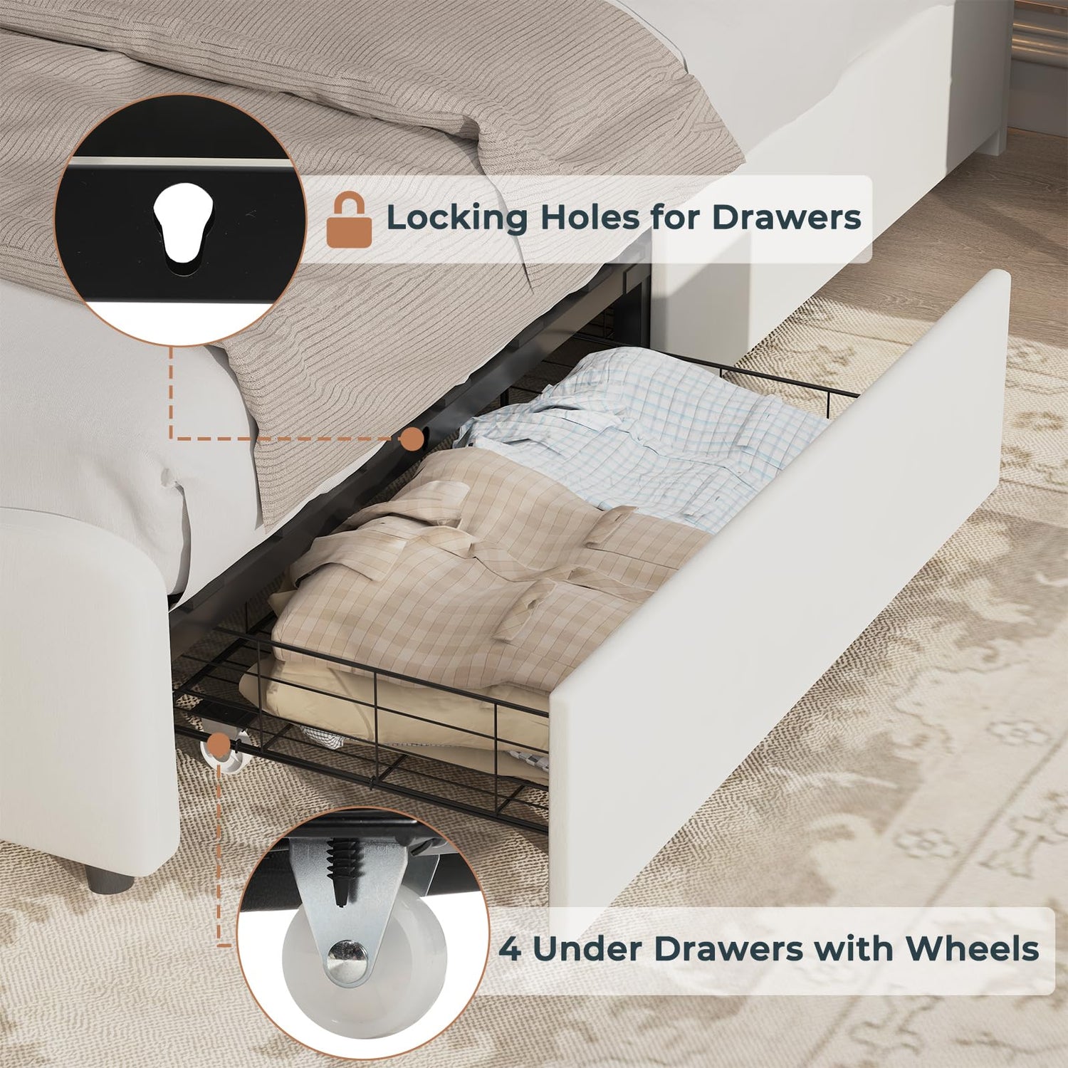 - 【Twin Bed with 4 Storage Drawers】Equipped with four large-capacity storage drawers underneath the twin bed frame with storage. Additionally, each drawer is equipped with a locking mechanism to prevent them from sliding out of place.