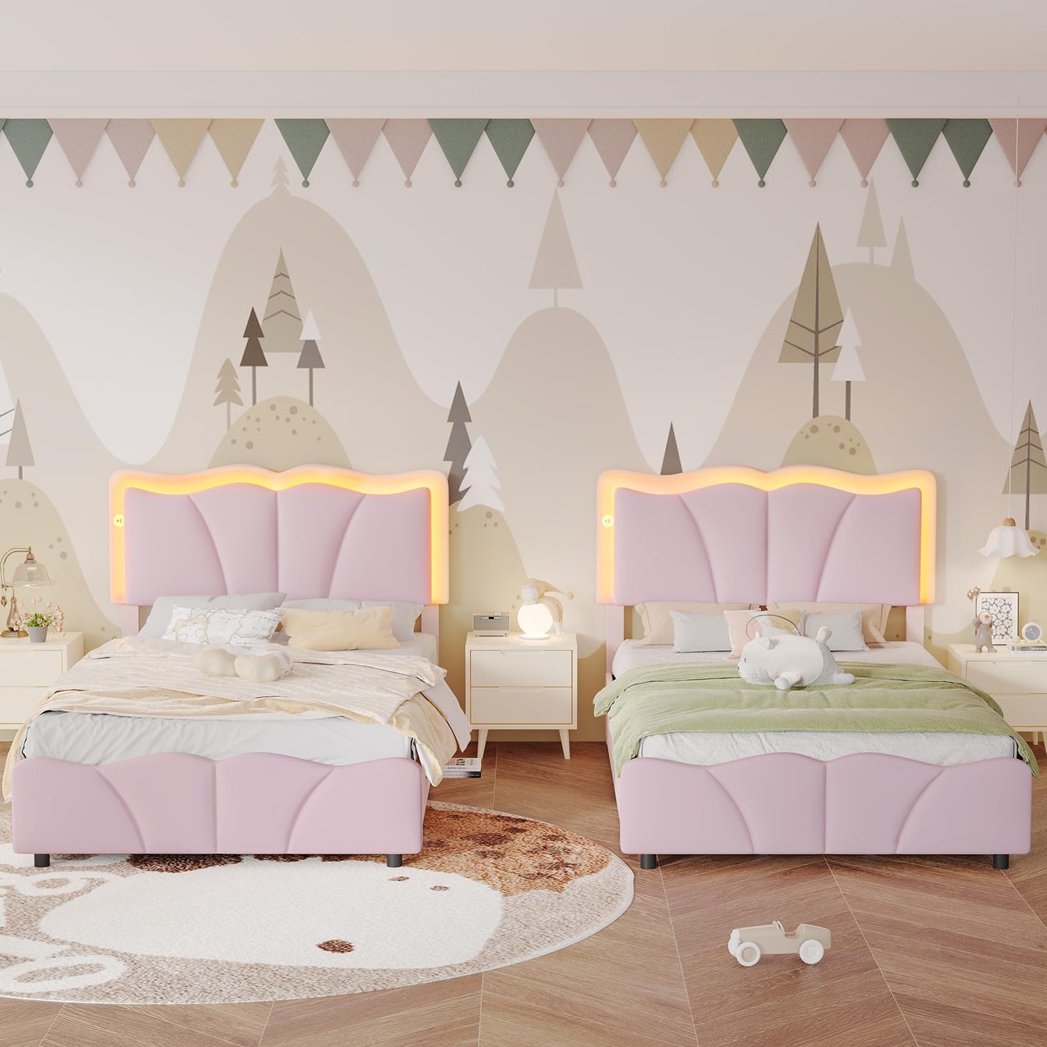 - 【Stylish Velvet Flower Bed Frame】 AOGLLATI twin bed frames for kids with stylish flower design,giving your bedroom a beautiful and warm look, and the soft velvet material also bring a comfortable touch.