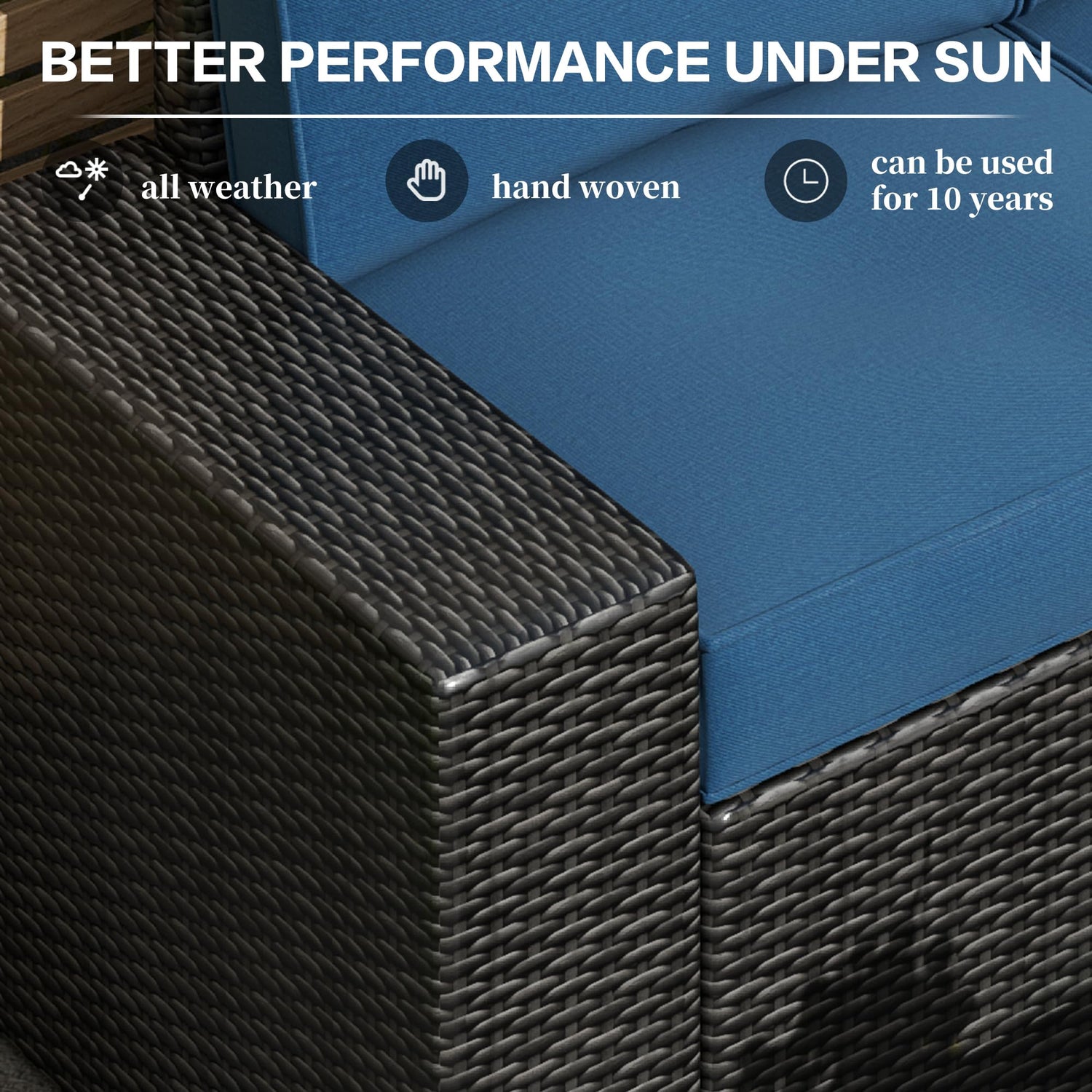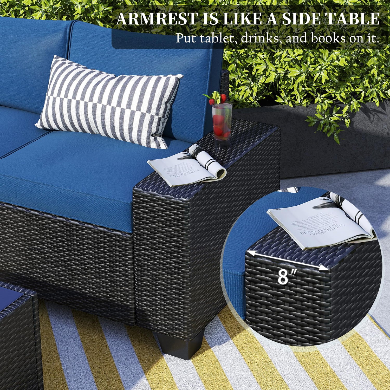 Aohanoi 6 Pieces Patio Furniture Set, Outdoor Sectional Set of 6 w/Wide Armrest, Waterproof Wicker Conversation Set for Backyard, Deck, Lake Blue