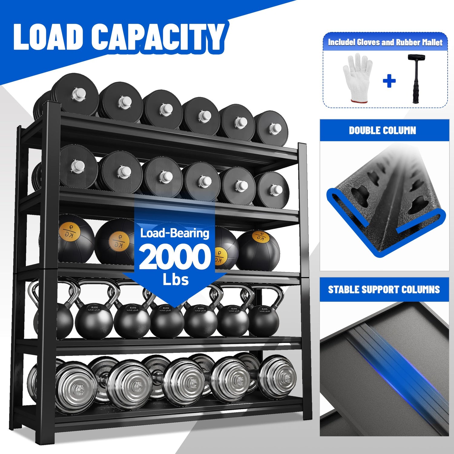 - 2000LBS Capacity Garage Storage Shelves: This 5-tier shelving unit is made of industrial-strength cold rolled steel, Wider and thicker columns and shelves make the garage shelving more stable and solid. Support rid for more load bearing
