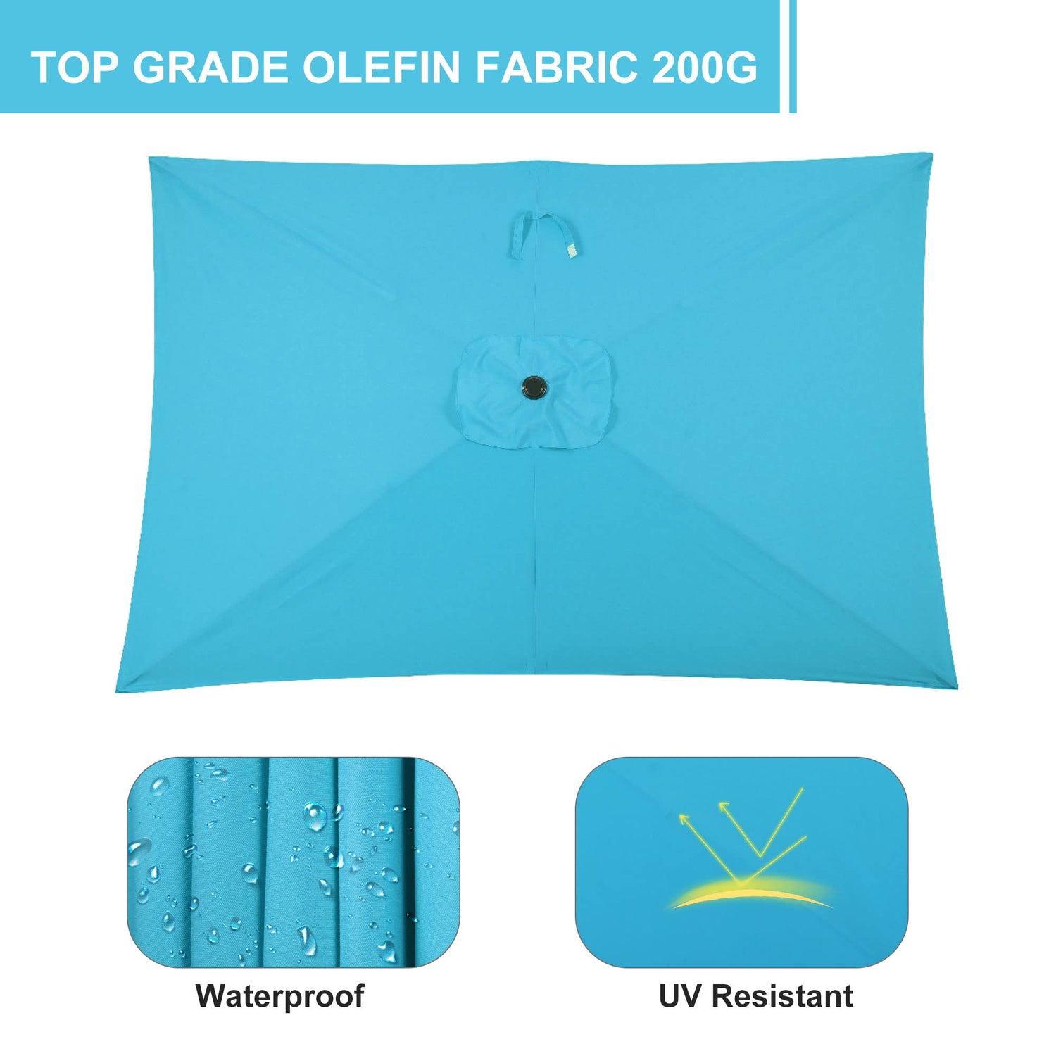 Aok Garden 6.5x10 ft Rectangular Patio Umbrella Outdoor Market Table Aluminum Pole Umbrella with Tilt and Crank 6 Sturdy Ribs for Deck Lawn Pool, Lake Blue