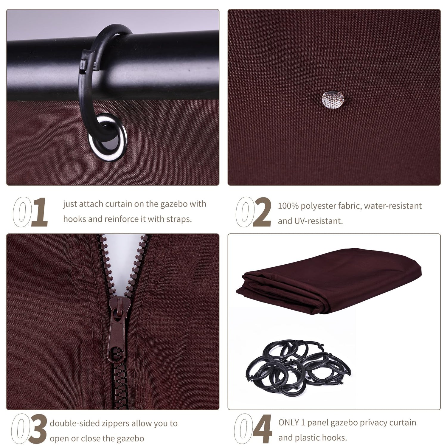 AONEAR Gazebo Privacy Curtain with Zipper Side Wall Universal Replacement for 10' x 10' Gazebo, Patio, Outdoor Canopy, Garden and Backyard,Coffee Brown (1-Panel Curtain Only)