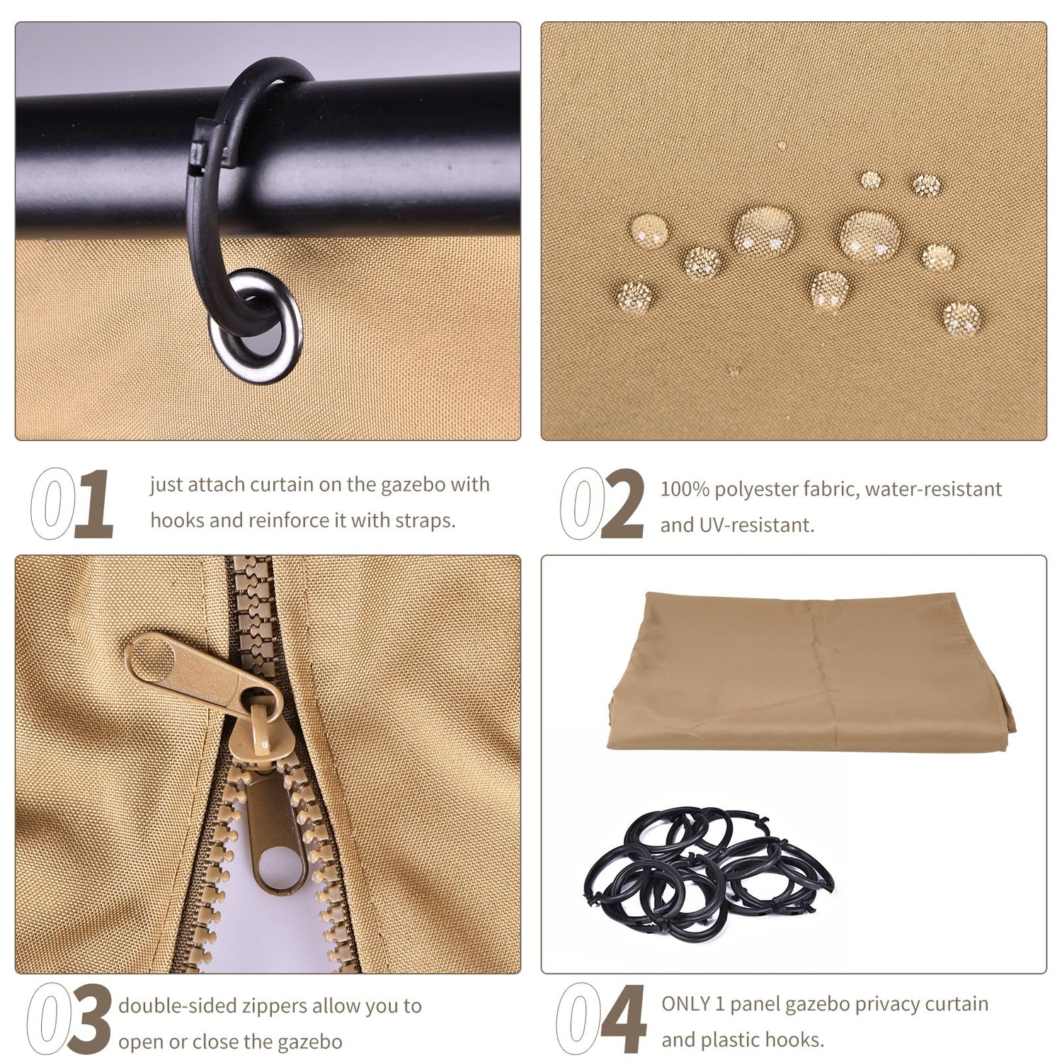 AONEAR Gazebo Privacy Curtain with Zipper Side Wall Universal Replacement for 10' x 10' Gazebo, Patio, Outdoor Canopy, Garden and Backyard, Khaki (1-Panel Curtain Only)
