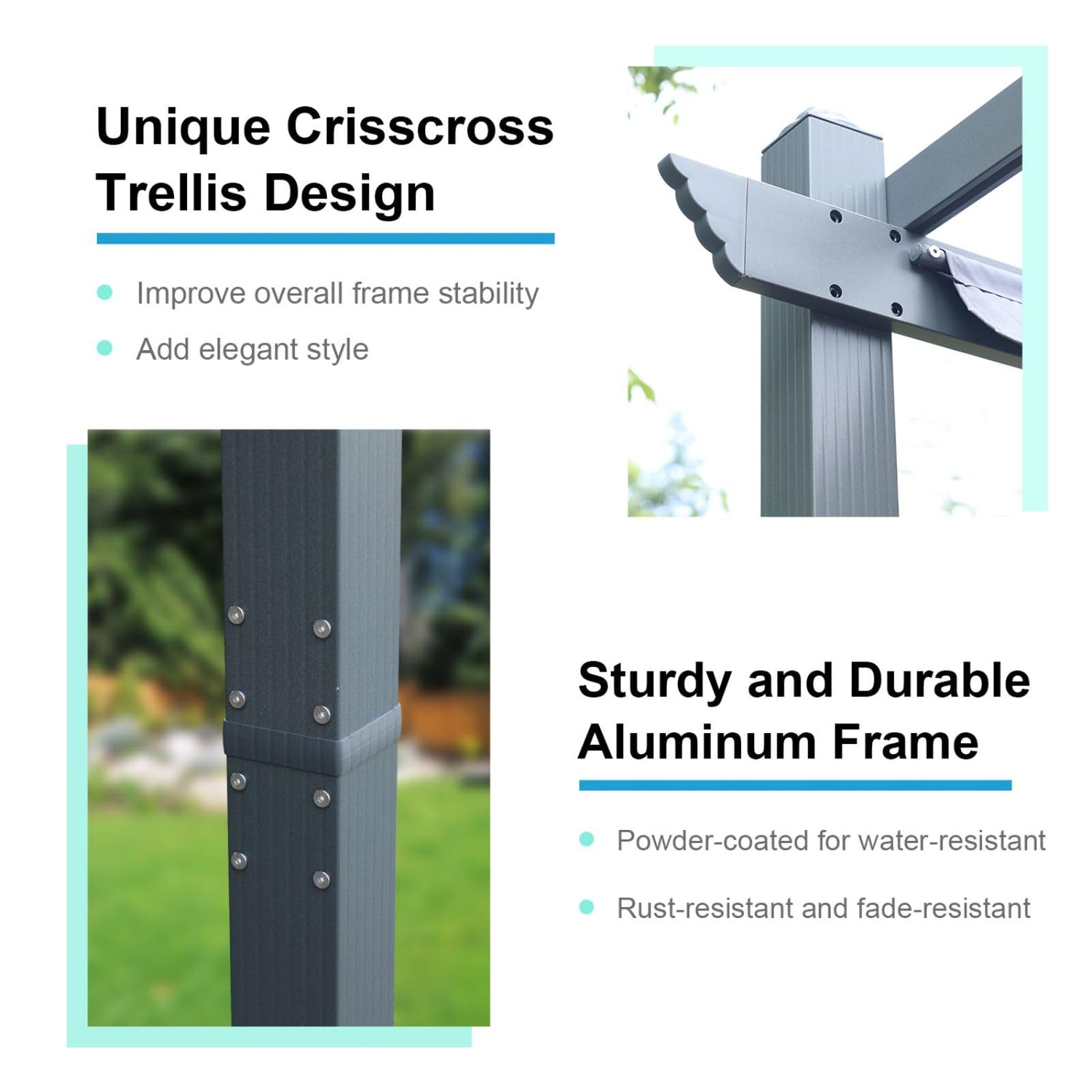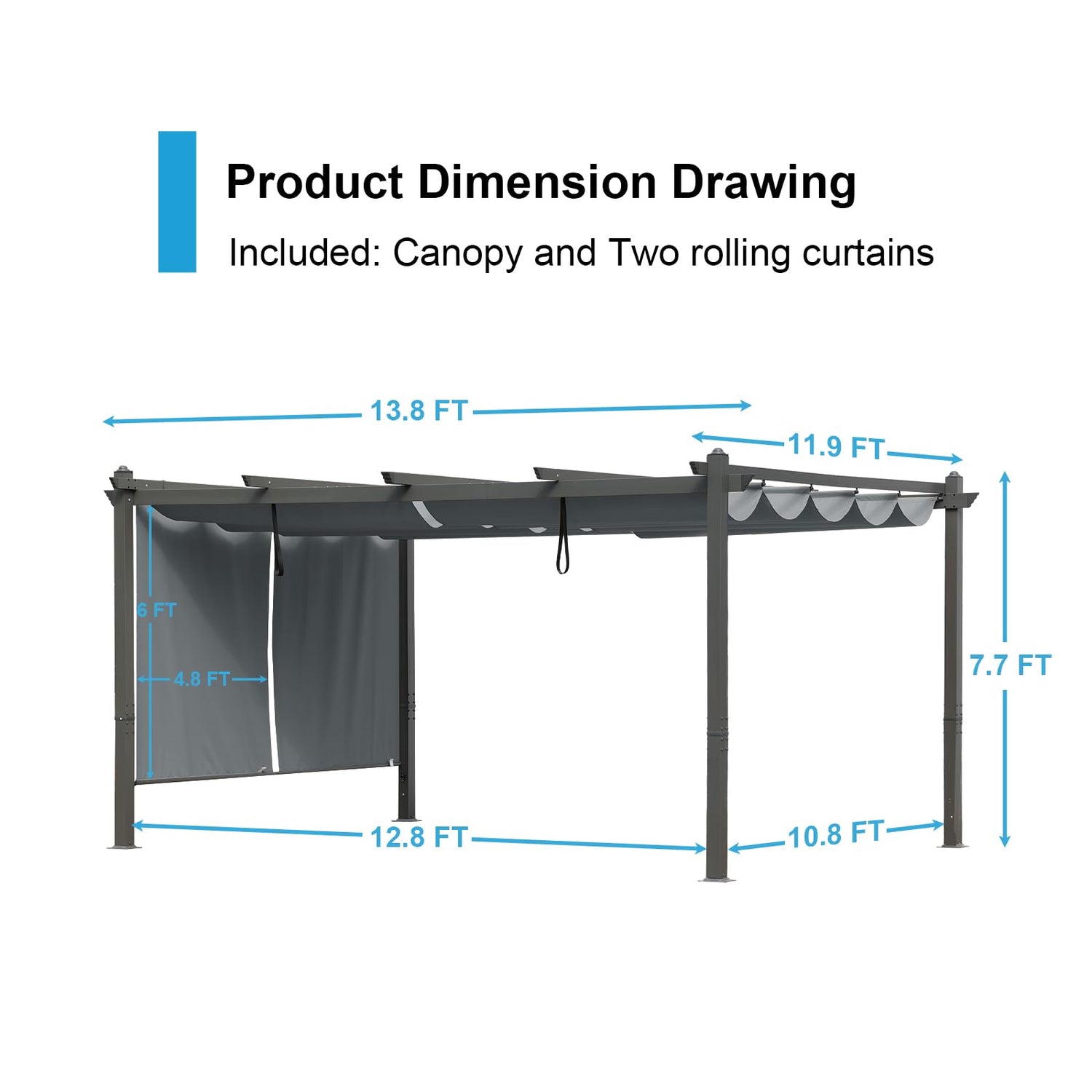 Aoodor 12 x 14 FT Outdoor Pergola with Retractable Shade Canopy, Dark Gray Matte Aluminum Frame, 2 Pieces Roller Shade Curtain, Grape Trellis Pergola for Patio Backyard and Deck - Gray