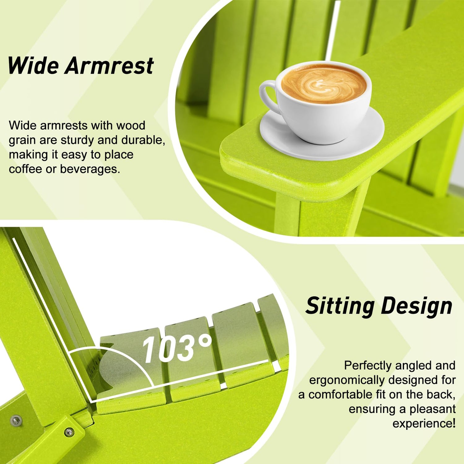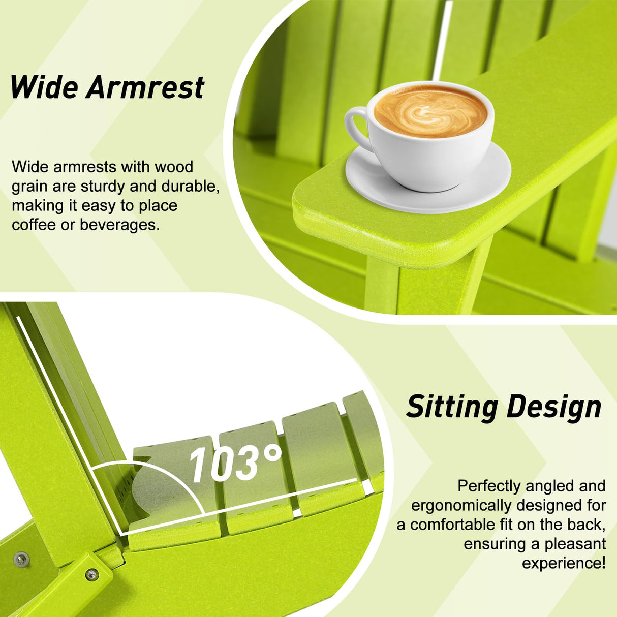 - 【Wood-like Texture】 - Aoodor high-quality Adirondack chairs boast a unique wood-like color technology. Sit on the Aoodor Adirondack chair, enjoy your leisurely time, and feel the natural wood grain texture beneath your fingertips, transporting you to the forest and offering peace of mind.