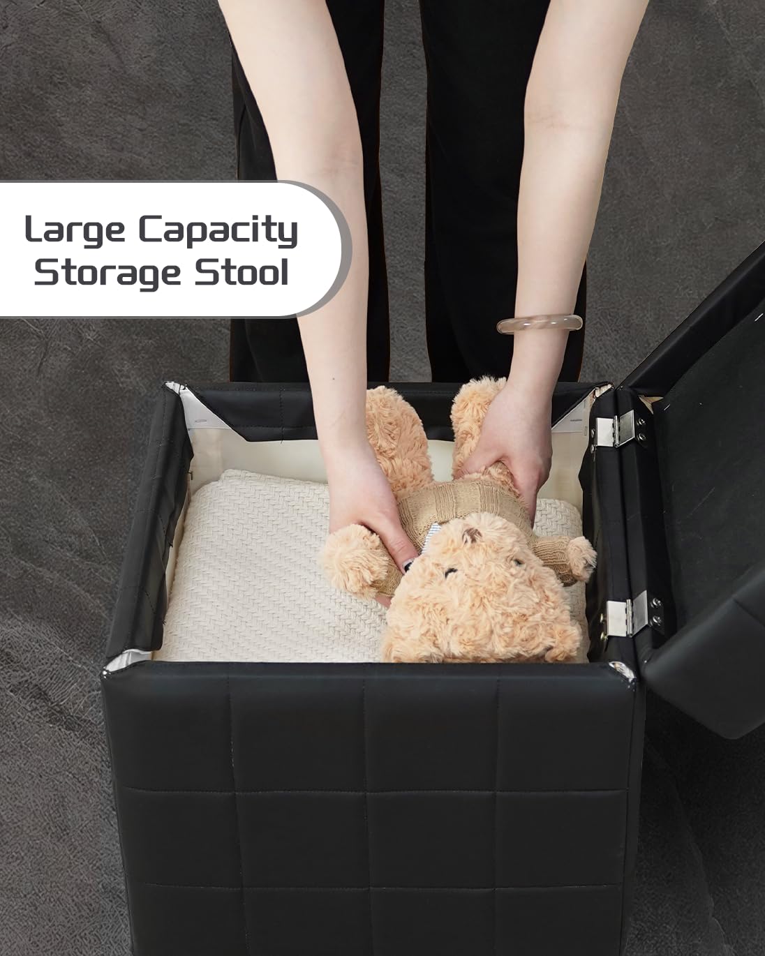 aoohxzr 17" Square Storage Ottoman Bench,Wooden Frame Loads,Flip-top Design,12.2 Gallons,Entryway Bedroom Living Room Foot Stool,Synthetic Leather with Stitching,Light Luxury Modern Style,Ferrous