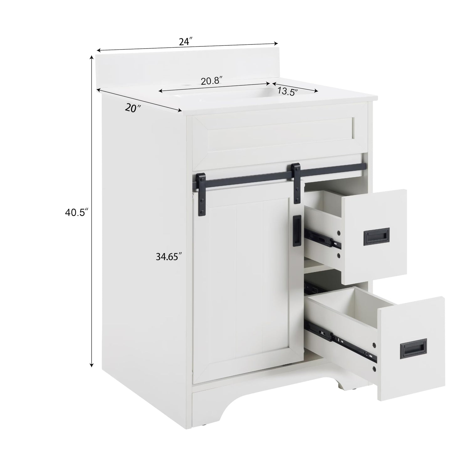 AOPNOMU 24’’ Inch White Bathroom Vanity Set - MDF+Metal Construction, with Sink,with Sliding Barn Doors and 2 Drawers, Freestanding Bathroom Vanities,White