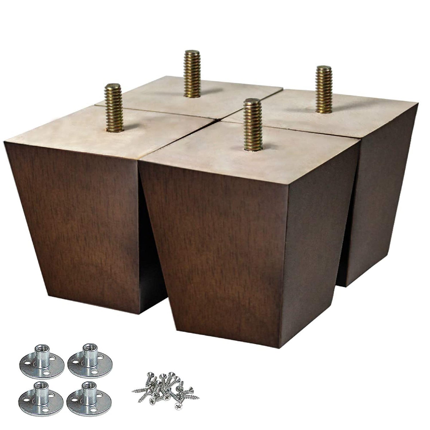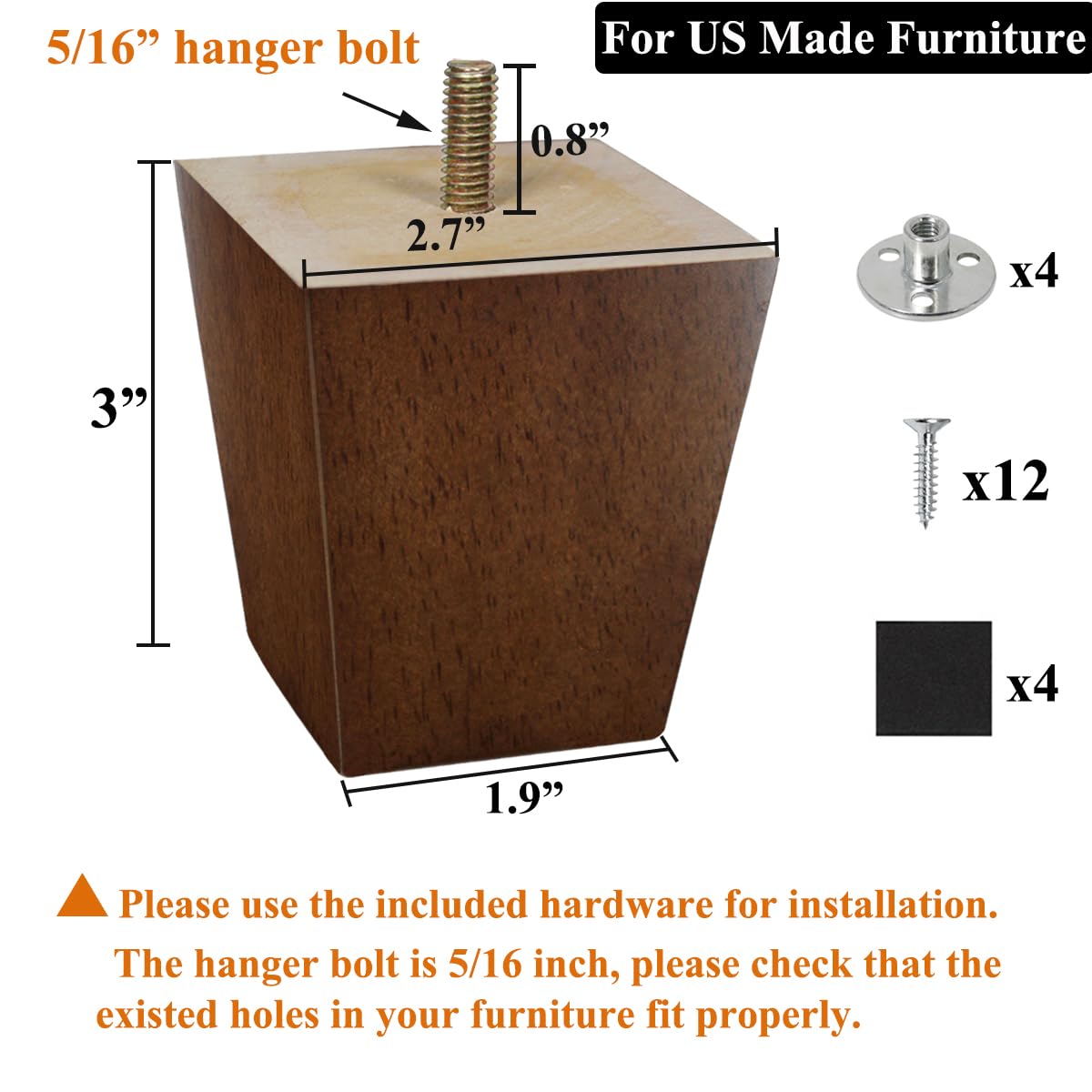AORYVIC Wood Furniture Legs 3 inch Sofa Legs Pack of 4 Square Couch Legs Brown Mid-Century Modern Replacement Legs for Armchair Recliner Coffee Table Dresser