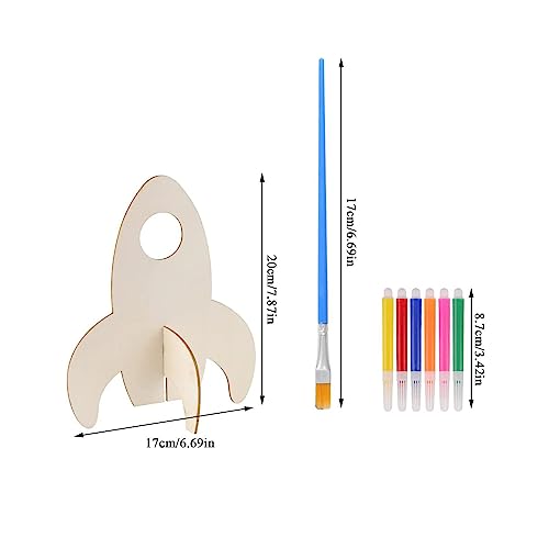 - 【Package】: Pack of 10pcs rockets wooden cutouts, 6 color watercolor pens, 6 pigment colors, 1 brush, perfect for kids, parties, home crafts, or classrooms.