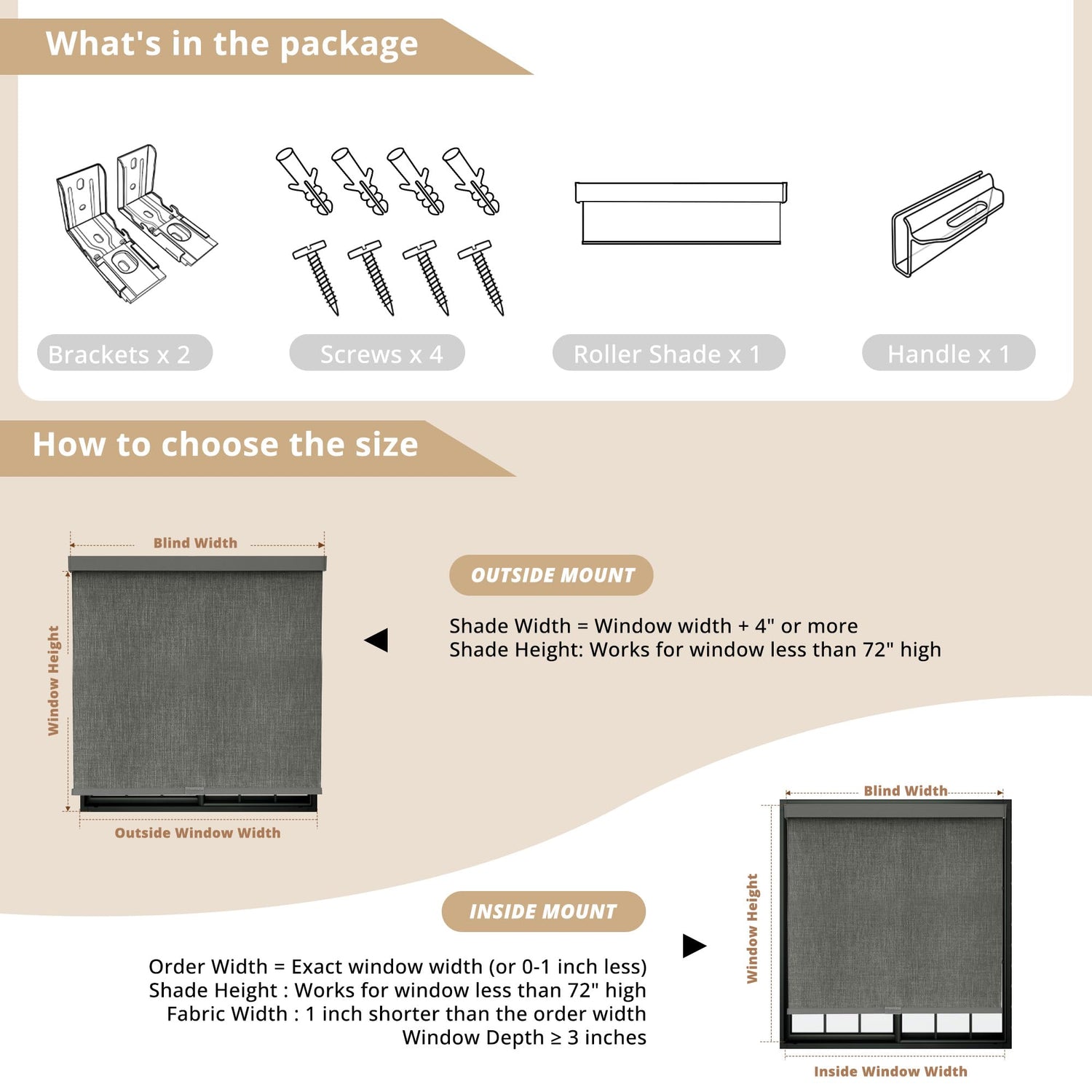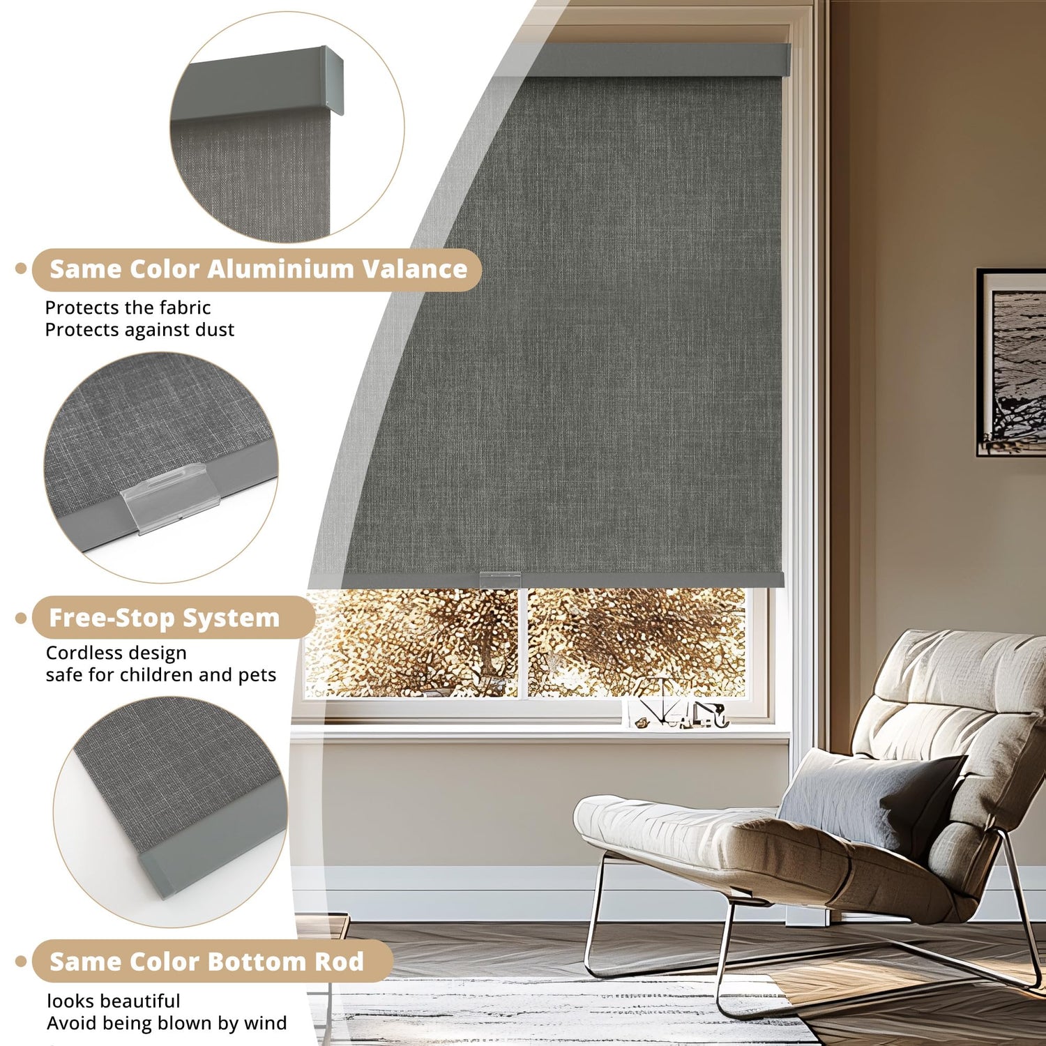 - 【Premium Materials and Design】:Crafted from Linen fabric with a heat-insulating graphic layer,our blackout roller shade offers a luxurious feel and textured look.It not only enhances privacy but also blocks UV rays