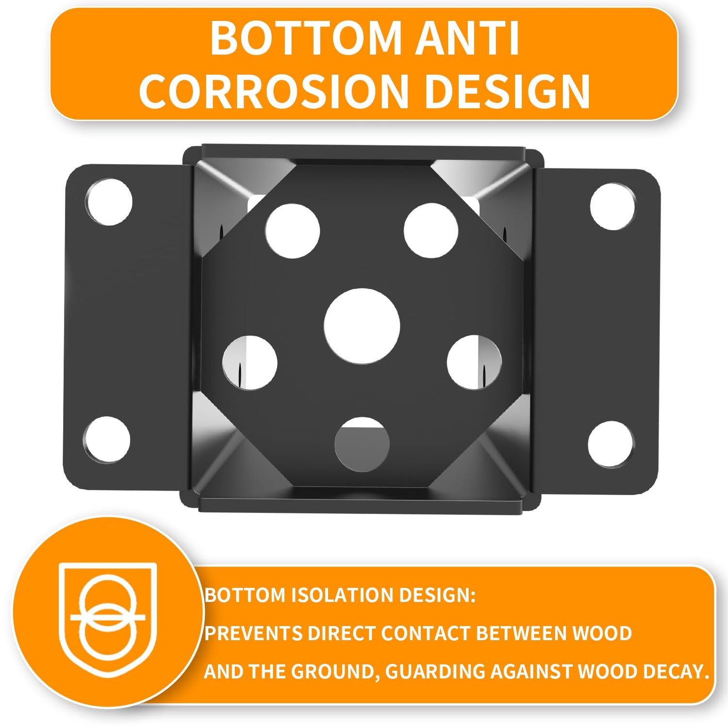 - Bottom Isolation Design: Our 4x4 post base features an isolation layer at the bottom to prevent direct contact between wood and the ground, reducing the risk of rot while maximizing stability without sacrificing space.