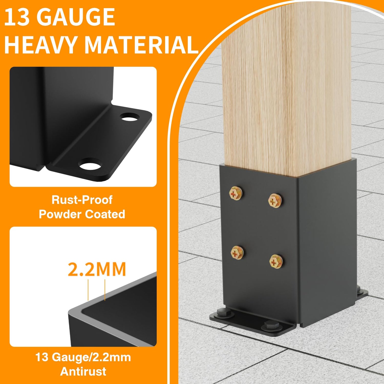 - Durable Material: Our post base is made from 13-gauge/2.2mm solid steel with a black powder coating, ensuring durability and rust resistance for long-lasting reliability in any weather conditions.