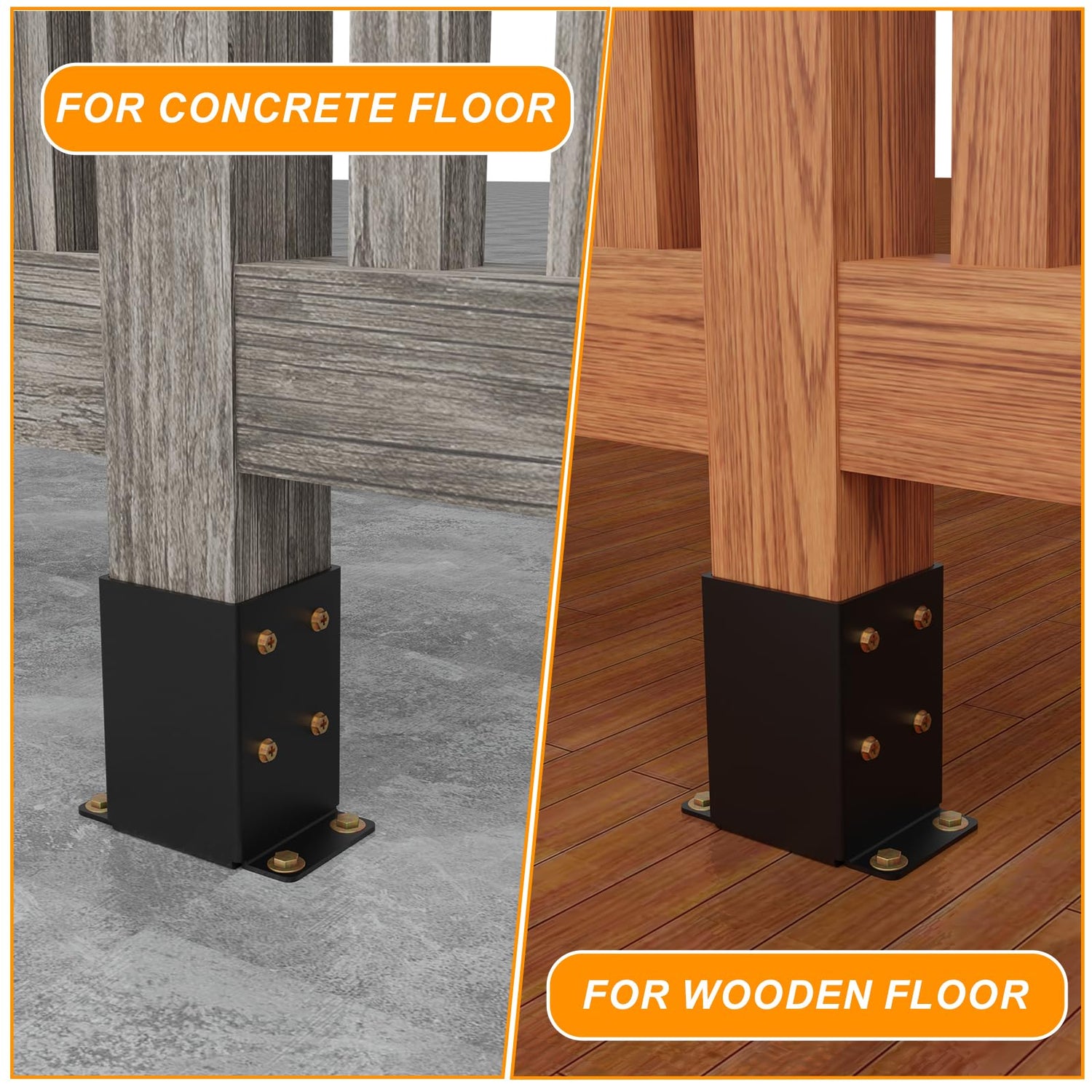 - Versatile Compatibility: Designed to accommodate actual 3.5x3.5 inch wood posts on wood or concrete floors, our post base provides stable support for various applications such as gazebos, decks, and porch railings.