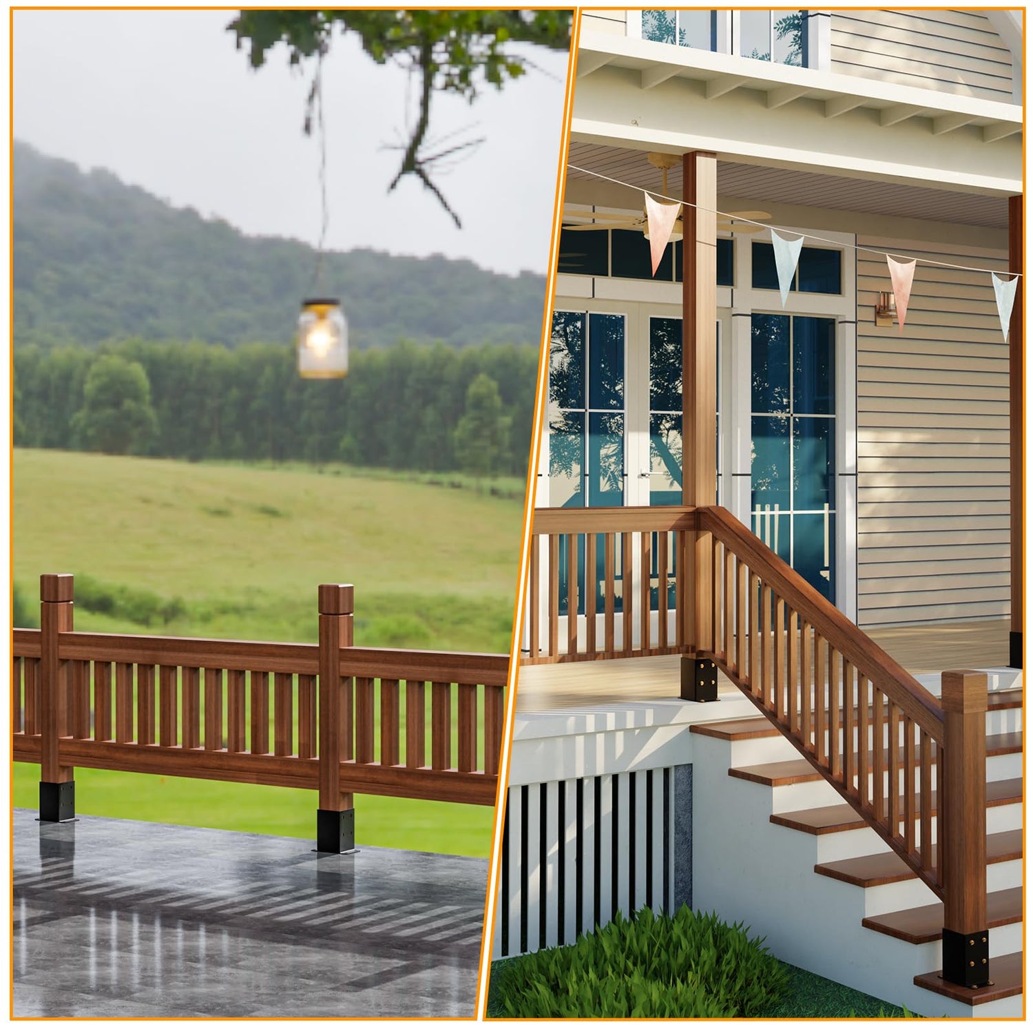 - Comprehensive Accessories: Each set of deck post base includes a wrench, 16 expansion anchors for concrete,and 32 self-tapping screws, ensuring hassle-free installation and secure attachment.