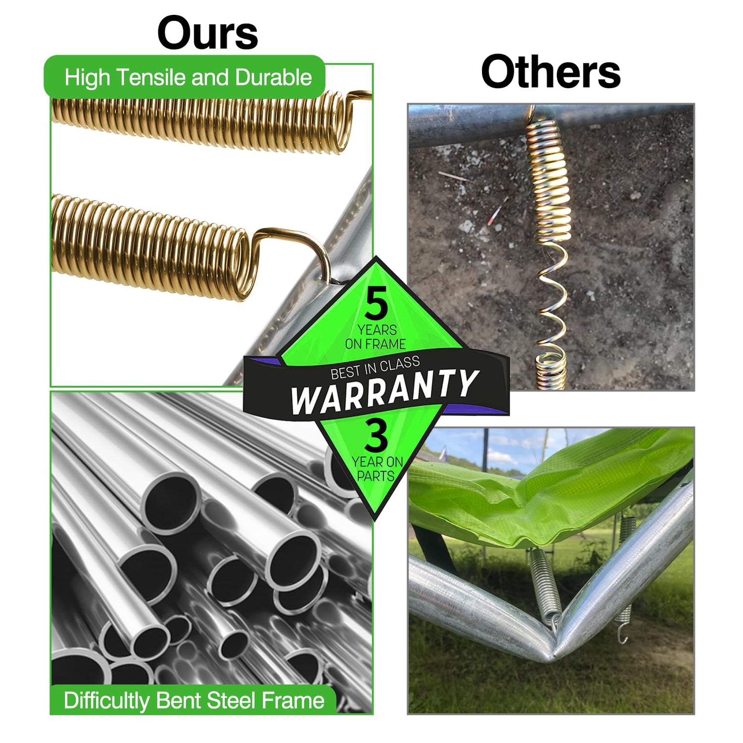- Superior Elasticity: Our 12 FT trampoline for toddlers and kids has 70 heavy duty galvanized springs that provide better elasticity than other brands' bungee cords, ensuring a fun and safe jumping experience for your little ones.