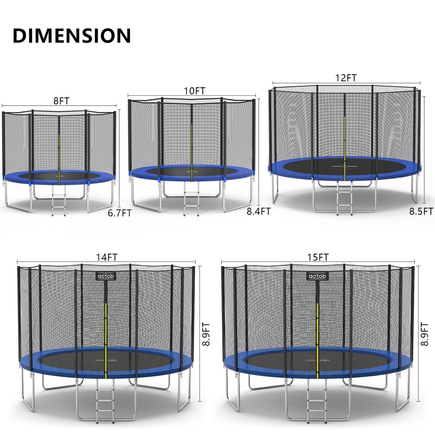 AOTOB 12 FT Trampoline Safety Enclosure Net Combo Bounce Jump for Kids Outdoor with Spring Pad Waterproof Jump Mat & Ladder