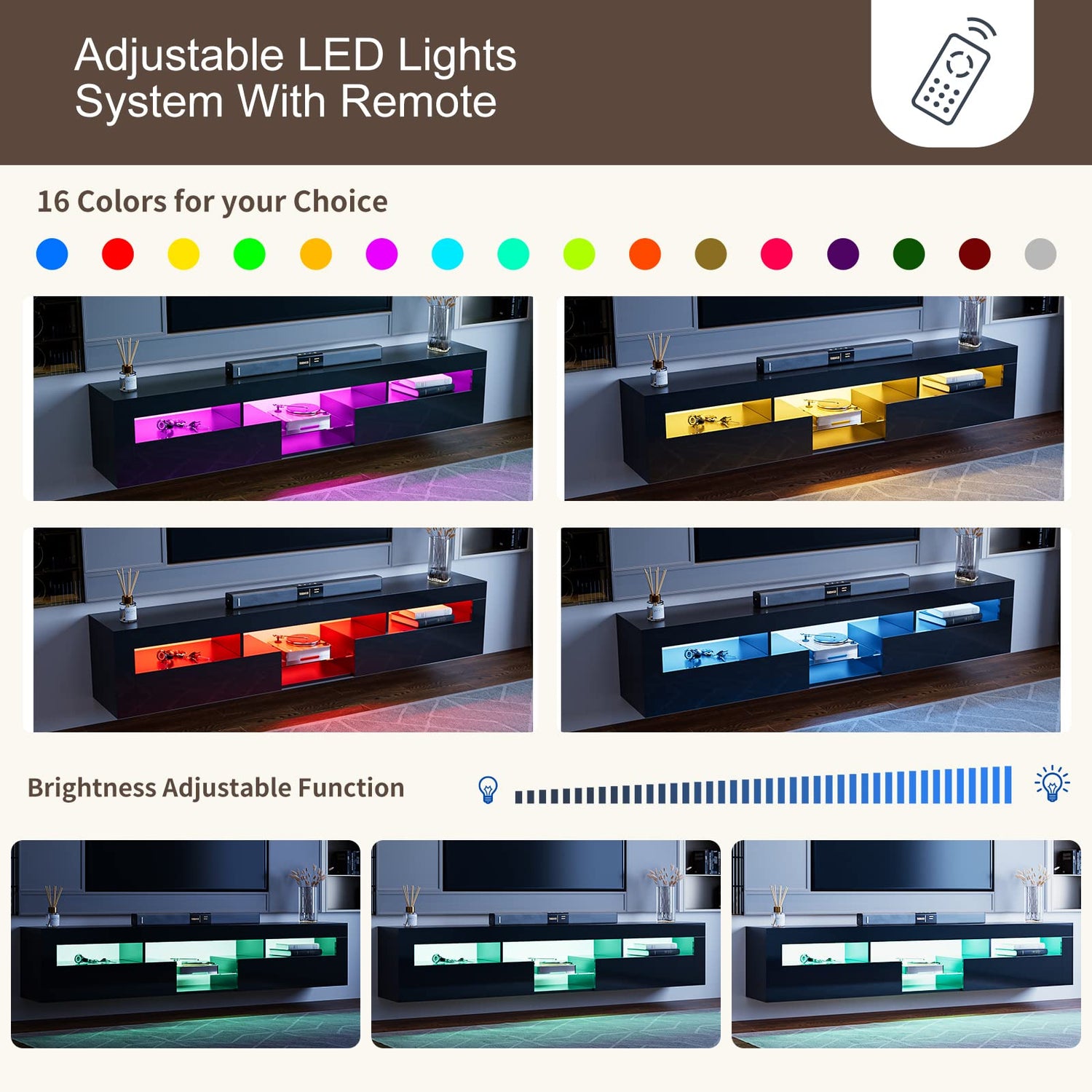- Floating Design: The Floating TV Stand matches well with any style of furniture and decor in your home. Simple and bright exterior design will add elegance and vitality to the living room