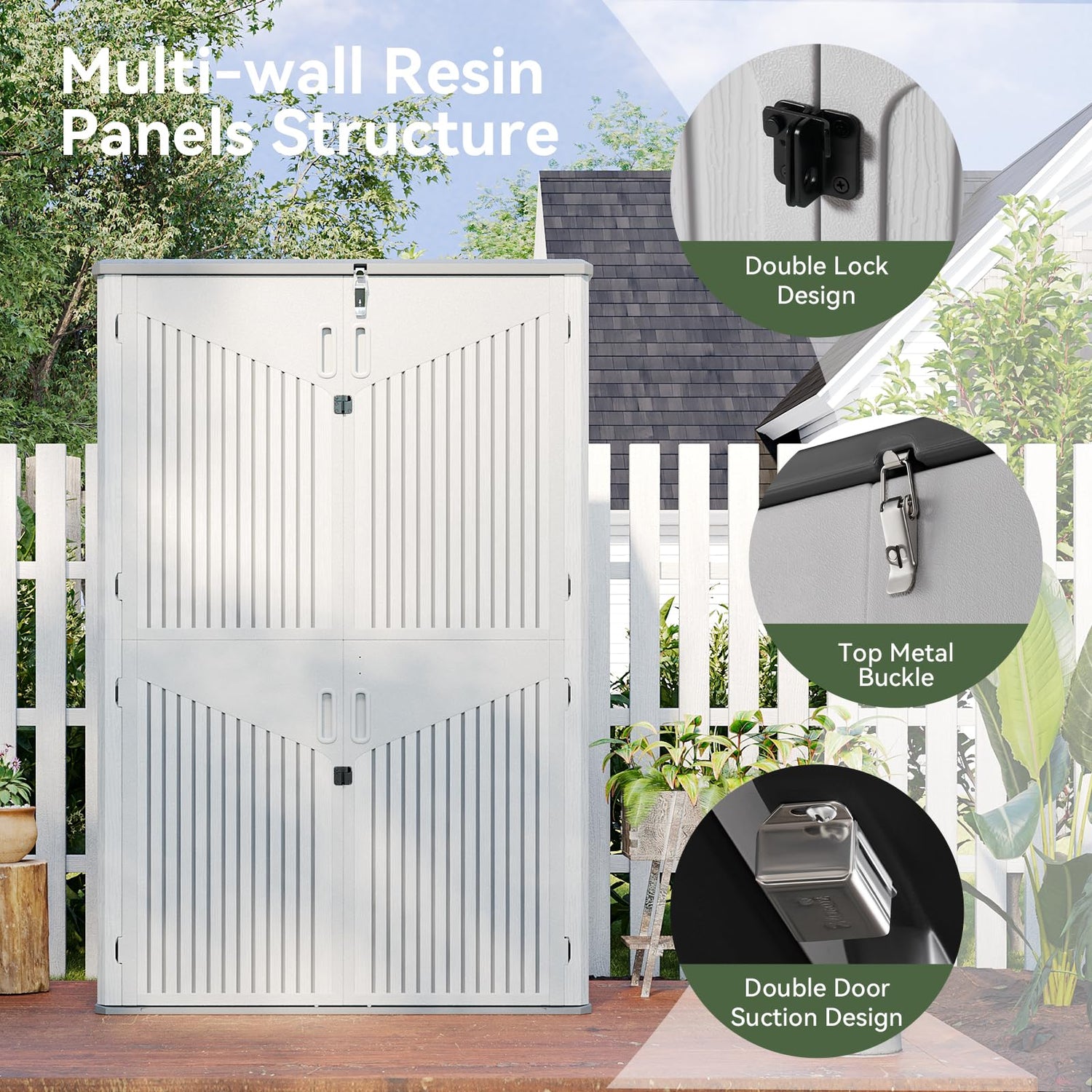 Aoxun Outdoor Resin Storage Shed with 2 Shelves & Floor, 64 Cu.Ft Vertical Waterproof Storage Cabinet for Garage Storage, Pool Storage, Bike Shed, Garden Tools, Patio Furniture (White)