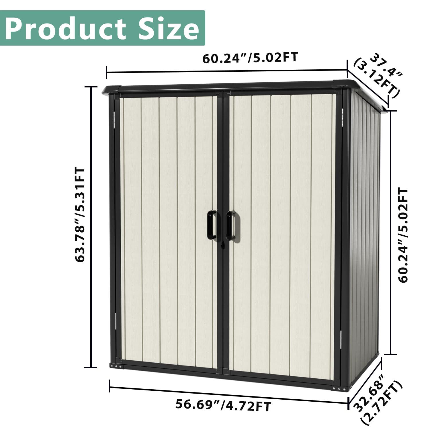 Aoxun Outdoor Storage Shed 5 x 3FT, Resin Shed with Floor and Lockable Door, Plastic Shed for Bike, Garbage Can, Tool, Accessories, Lawn, Garden - Beige