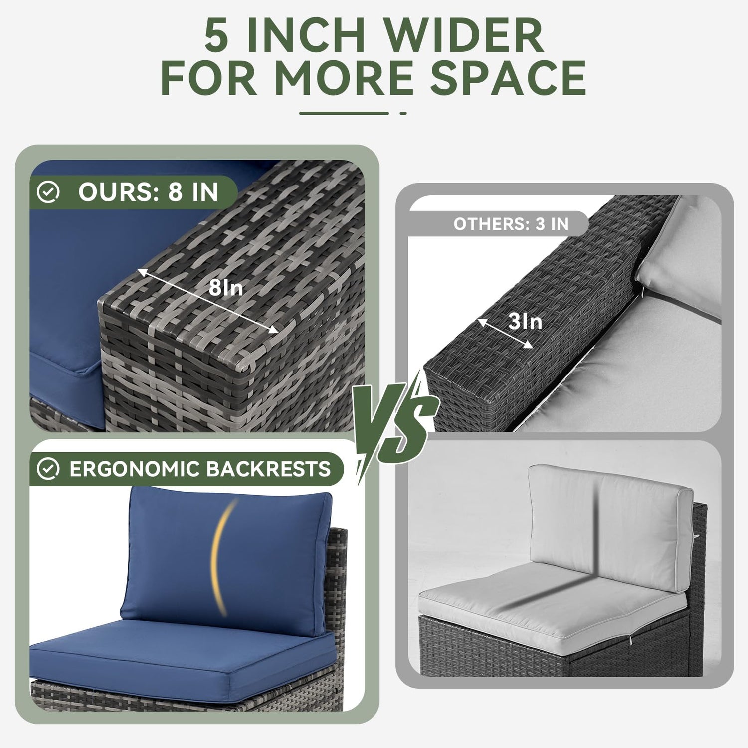 - 【Enhanced Wide-Arm Comfort】Upgrade your relaxation with 5-inch wider armrests—generously padded for unparalleled support. Whether resting a drink, propping up a book, or simply lounging, the extra space provides superior elbow-to-wrist comfort compared to standard designs. Perfect for stretching out or sharing the space, these broad, cushioned arms redefine outdoor ease