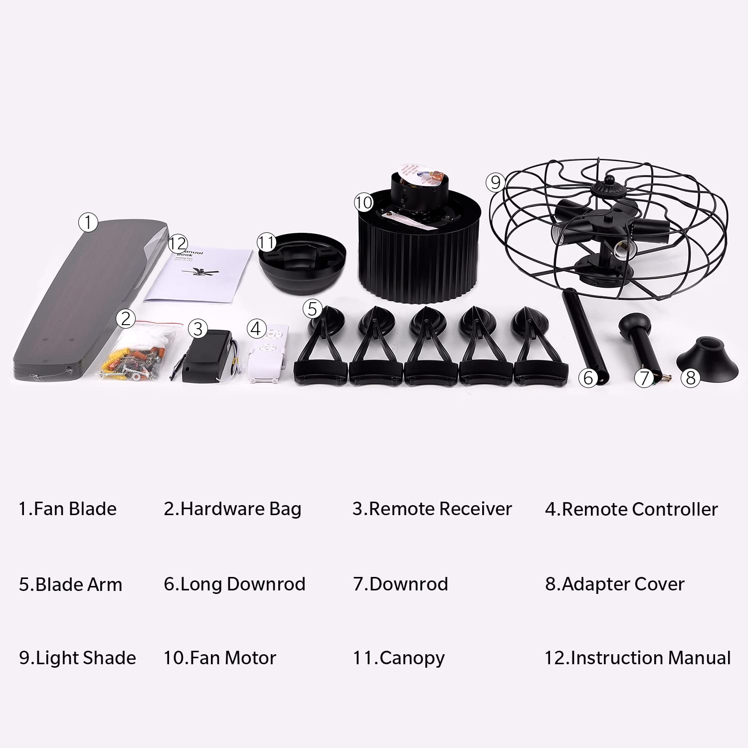 - UNIQUE DESIGN: This industrial farmhouse ceiling fan light is a combination of ceiling fan and light, it has a steel cage shape lampshade, which is novel, practical and ornamental. The 52inch farmhouse ceiling fan light is ideal for living room and farmhouse.