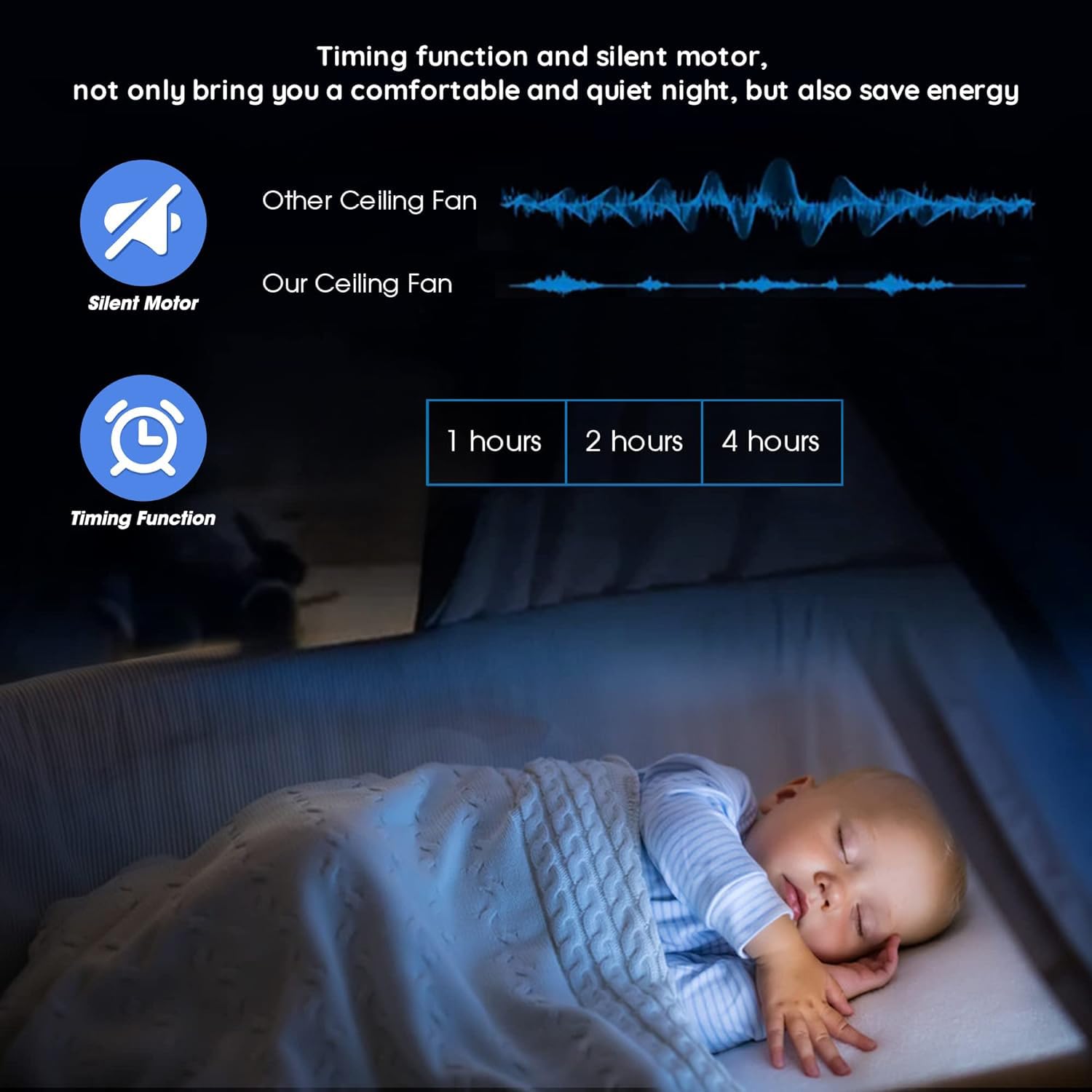 - MUTE MOTOR & REMOTE CONTROL: Quiet motor ceiling fan light with strong wind, the generator has no noise, so it can improve sleep quality. The farmhouse ceiling fan light provides 6 wind speeds: high, medium, and low, ceiling fan with remote have a timer function for 1, 2, 4 hours. These features allow you to enjoy a quiet and comfortable evening.