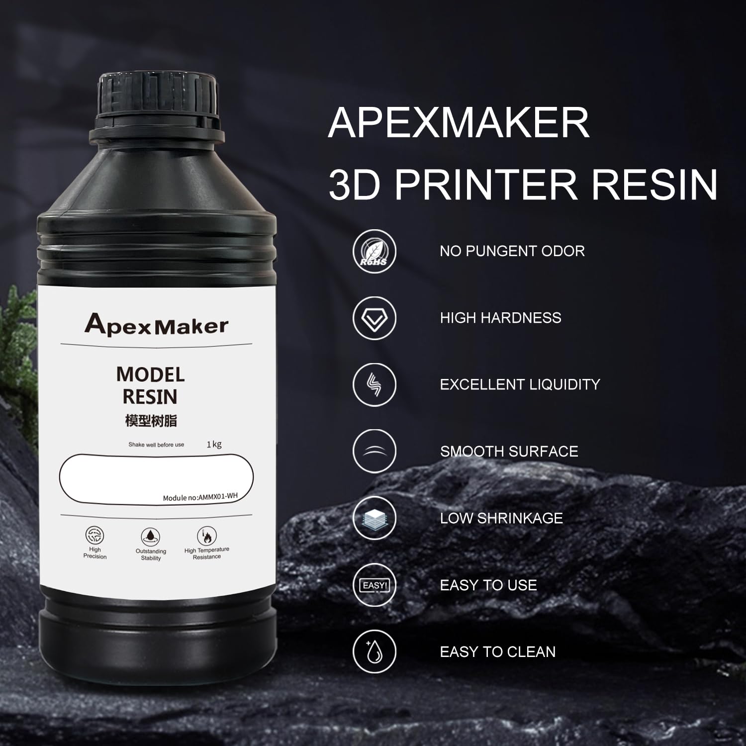 ApexMaker 3D Printer Resin White, 1000g, High Precision, Low Odor, Quick Curing Standard Photopolymer Resin, 385-405nm UV Curing 3D Printing Liquid Photopolymer Resin for LCD DLP SLA 3D Printers