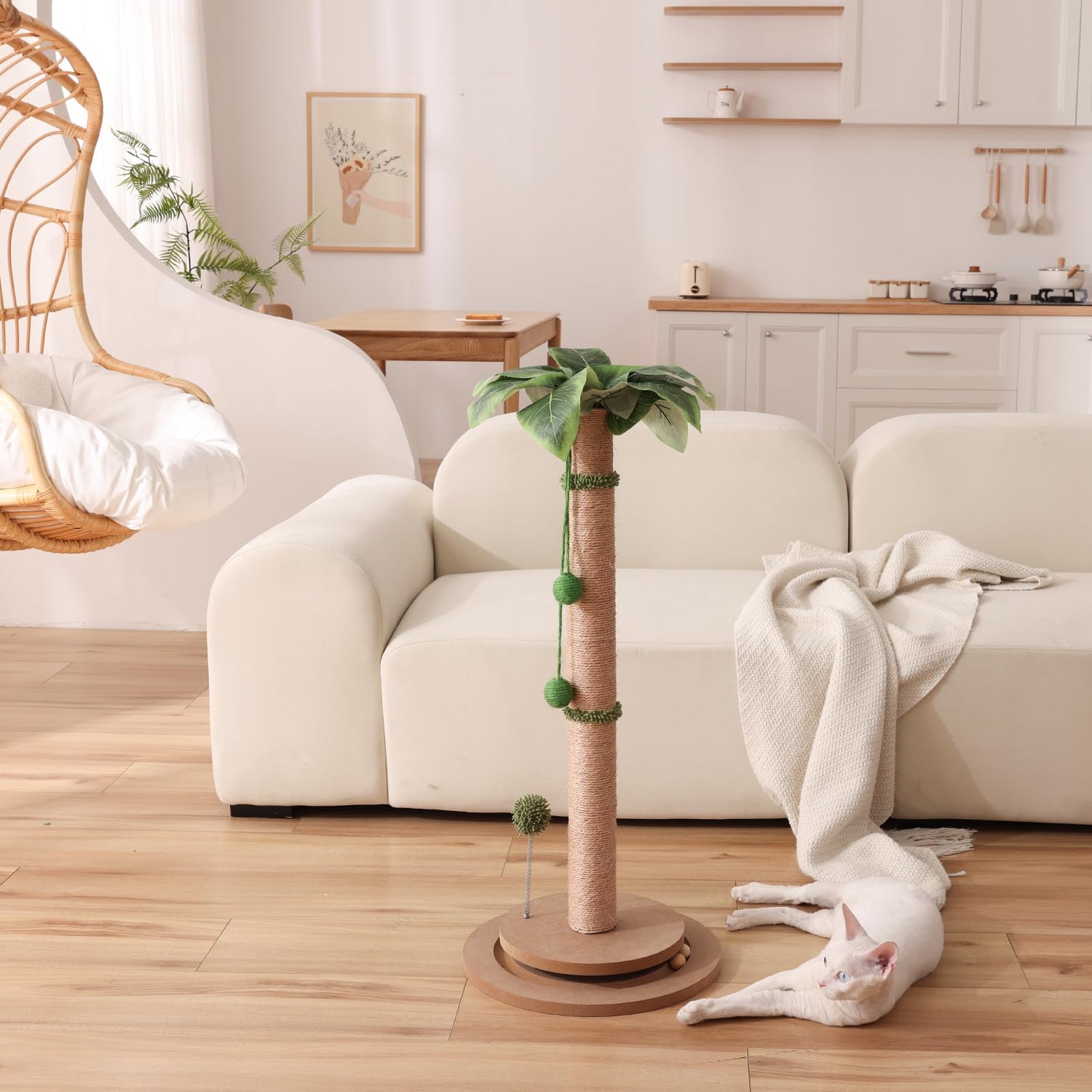 Aplatho Scratching Posts for Indoor Cats Adults - 33.2" Tall Cat Scratching Post with Sisal Rope - Cute Kitten Cat Tree Scratching Post with Interactive Ball Track