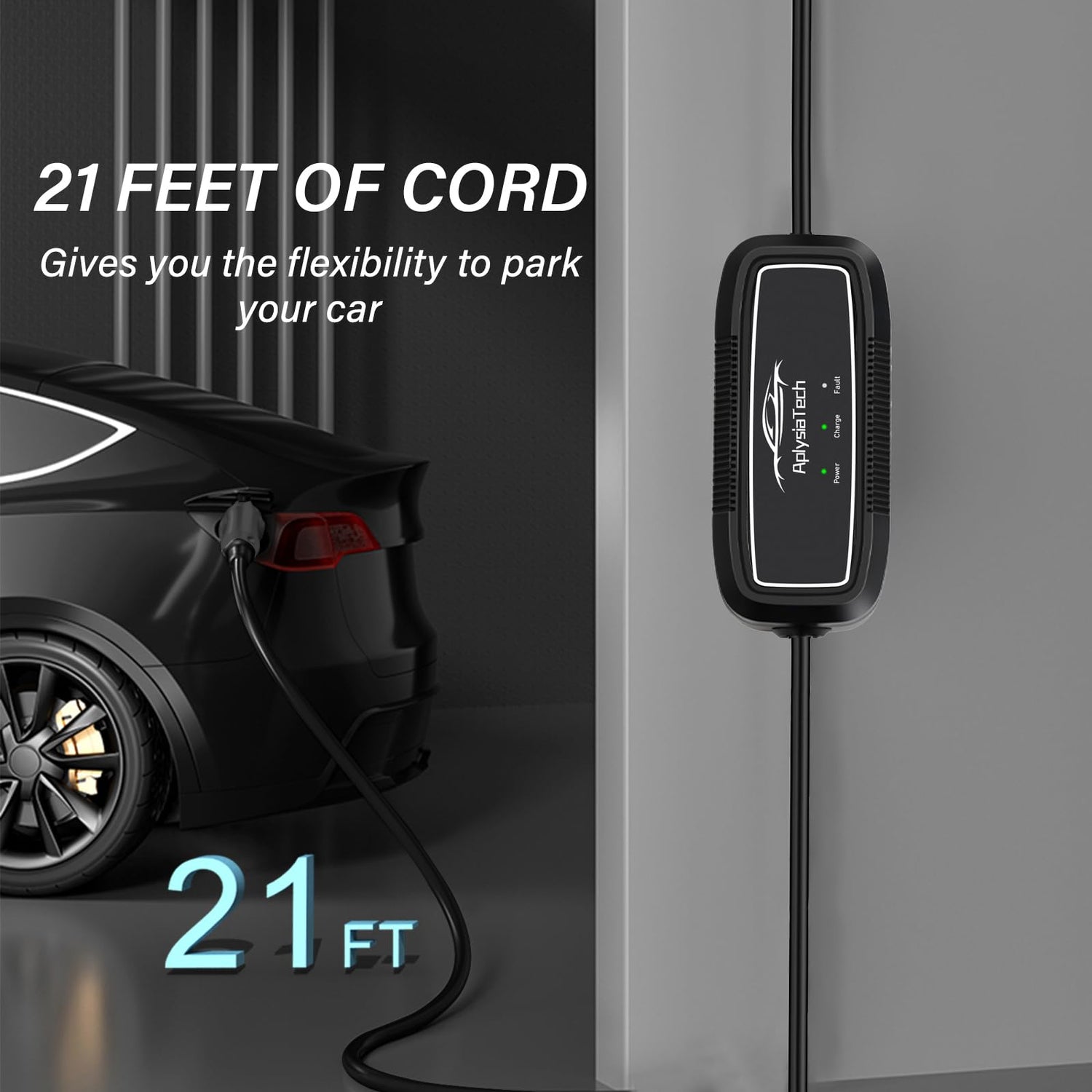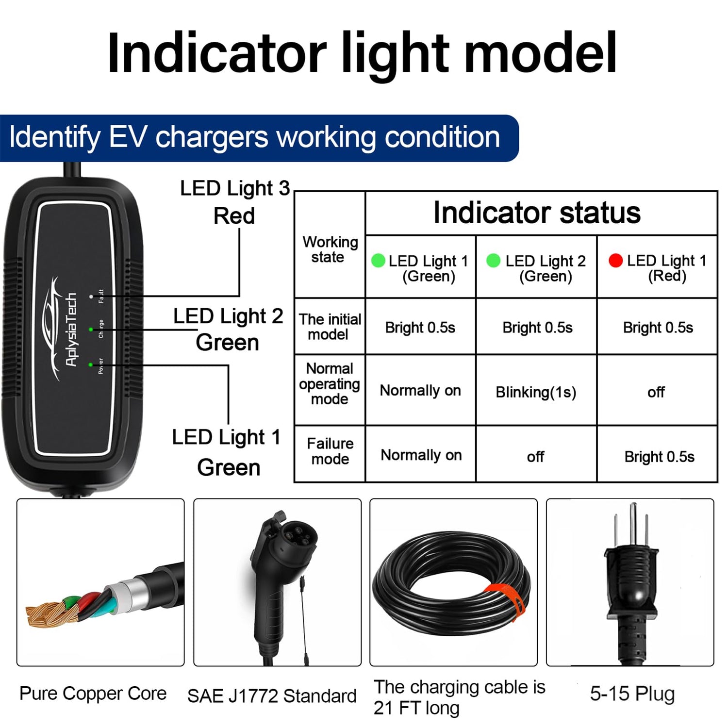AplysiaTech Portable EV Charger Level 1, 15Amp 110V, Electric Vehicle Charger with 21Ft Extension Cord,NEMA 5-15P for Plug-in Home EV Charging Station,Compatible with SAE J1772 EVs(Tesla Need Adapter)