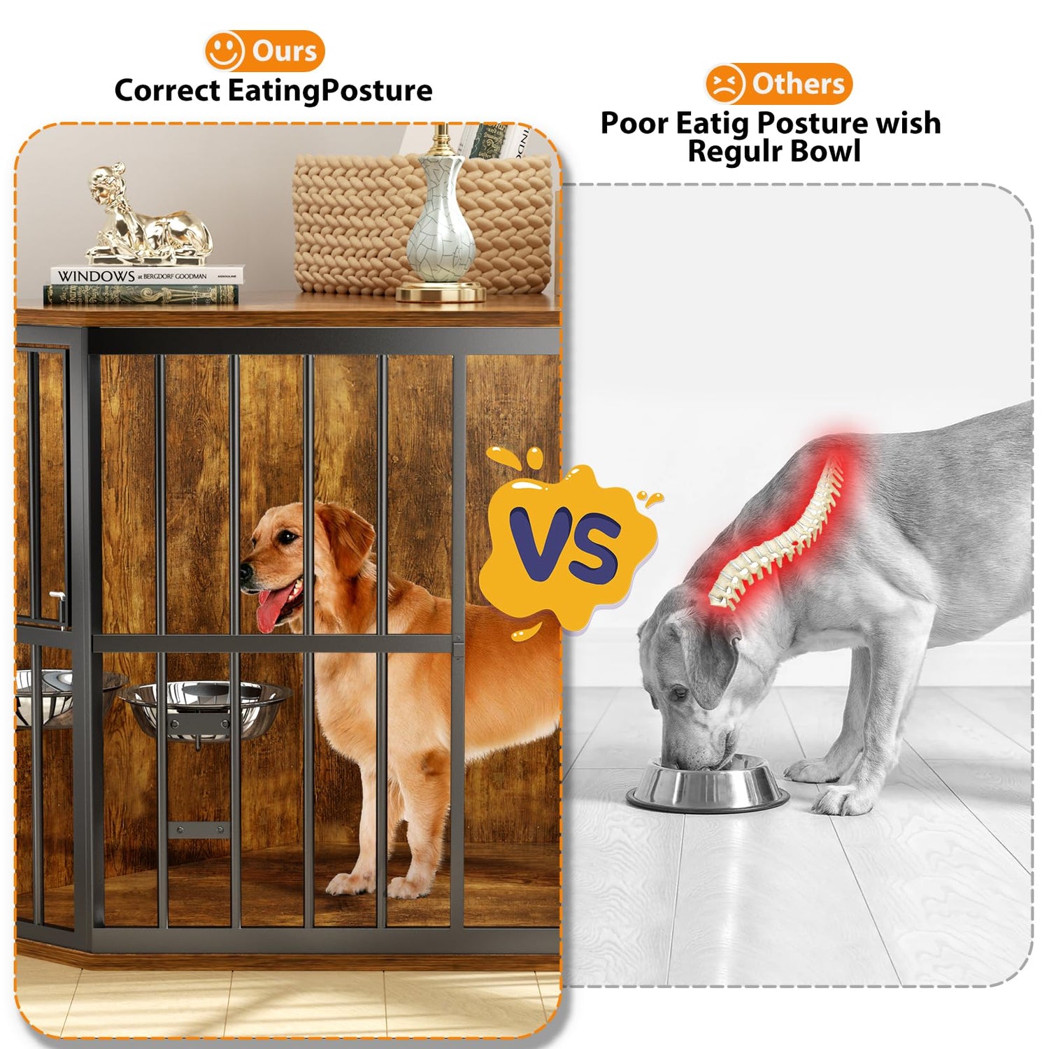 - 【⭐With 2 stainless steel bowl】: The dog cage is matched with two dog bowls, and the height is more suitable for dogs to eat, which is conducive to the health of dogs,dog bowls are strong and durable.You can also replace it with your dog's favorite dog bowl