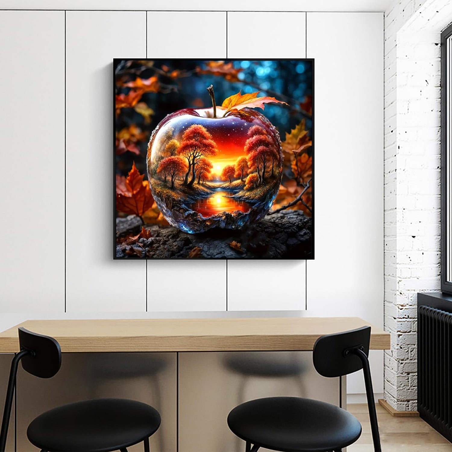 APTDYIGL 5D Autumn Maple Leaf Diamond Painting Kits for Adults Beginner,DIY Sunset Landscape Diamond Art Kits for Adults,Round Full Drill Diamond Dots with Gem Art Kits,Home Wall Decor 15.7X15.7inch