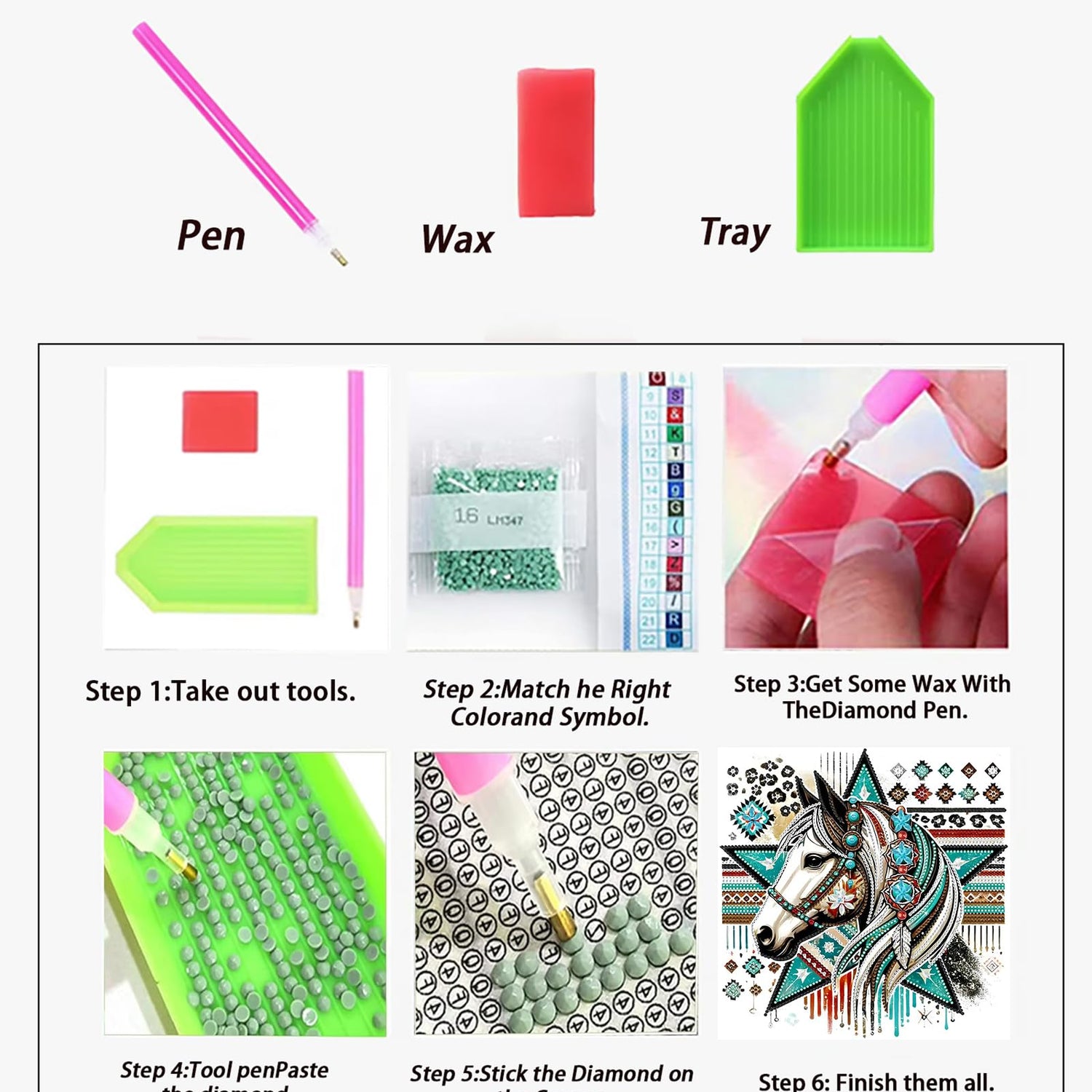 - 【Special Shape Diamond Art Kits Lncludes】 Horse diamond painting kits for adults tools in needed,with diamond dots kits for adults, you will get 1pc painting canvas, 1*diamond pen, 1*cube diamond tray, 1*red glue clay, 1*pen grip, 4*plastic ziplock bags for putting diamonds, enough colorful special shape diamond,we provide an extra 20% diamonds that the adult ,special shape full diamond painting kits can be completed smoothly