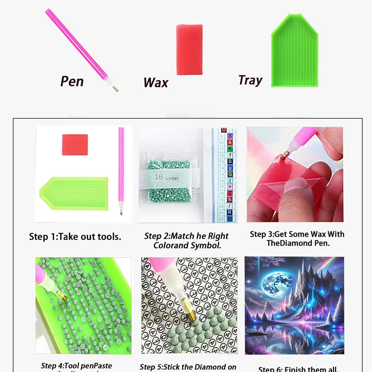 - 【Diamond Paintings Package Lncludes】 Moon landscape diamond painting kits for adults tools in needed,with diamond dots kits for adults, you will get 1pc painting canvas, 1*diamond pen, 1*cube diamond tray, 1*red glue clay, 1*pen grip, 10*plastic ziplock bags for putting diamonds, enough colorful round diamonds,we provide an extra 20% diamonds that the adult moon landscape diamond painting kits can be completed smoothly